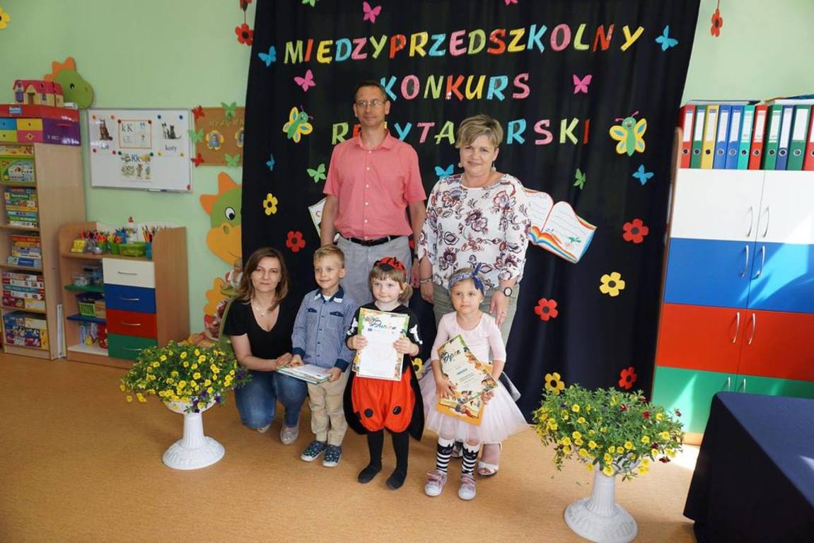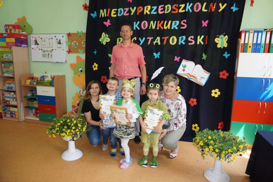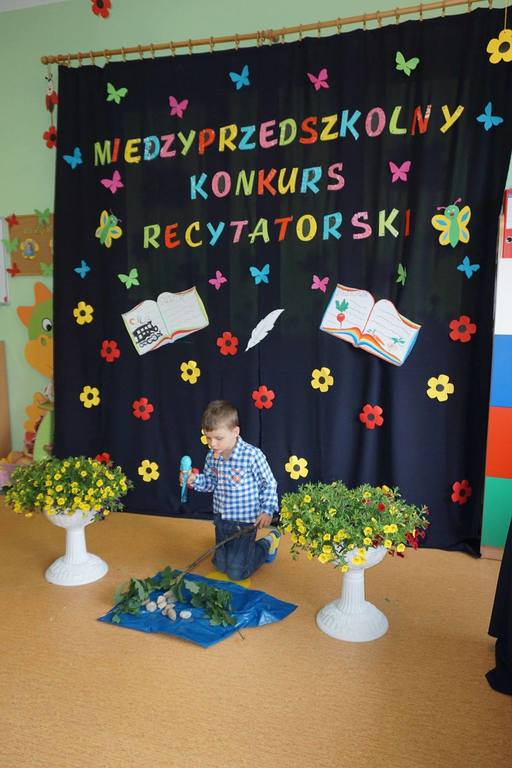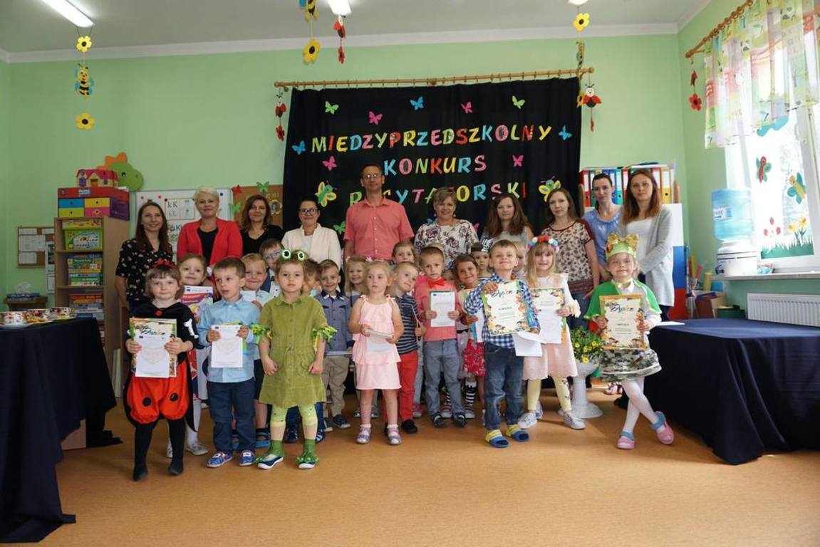 16 maja 2018 roku w naszej placówce odbył się między-przedszkolny konkurs recytatorski, w którym wzięło udział 22 dzieci z naszego przedszkola, z przedszkola w Kaliszkach, z Zielonej Akademii, z Przedszkola Elemelek oraz z Przedszkola Nutka. Konkurs miał formę prezentacji dowolnego utworu poetyckiego. Wszystkie maluchy pięknie recytowały nawet bardzo długie wiersze, a więc rywalizacja była zacięta. Po wielkich trudach komisja konkursowa wyłoniła zwycięzców: