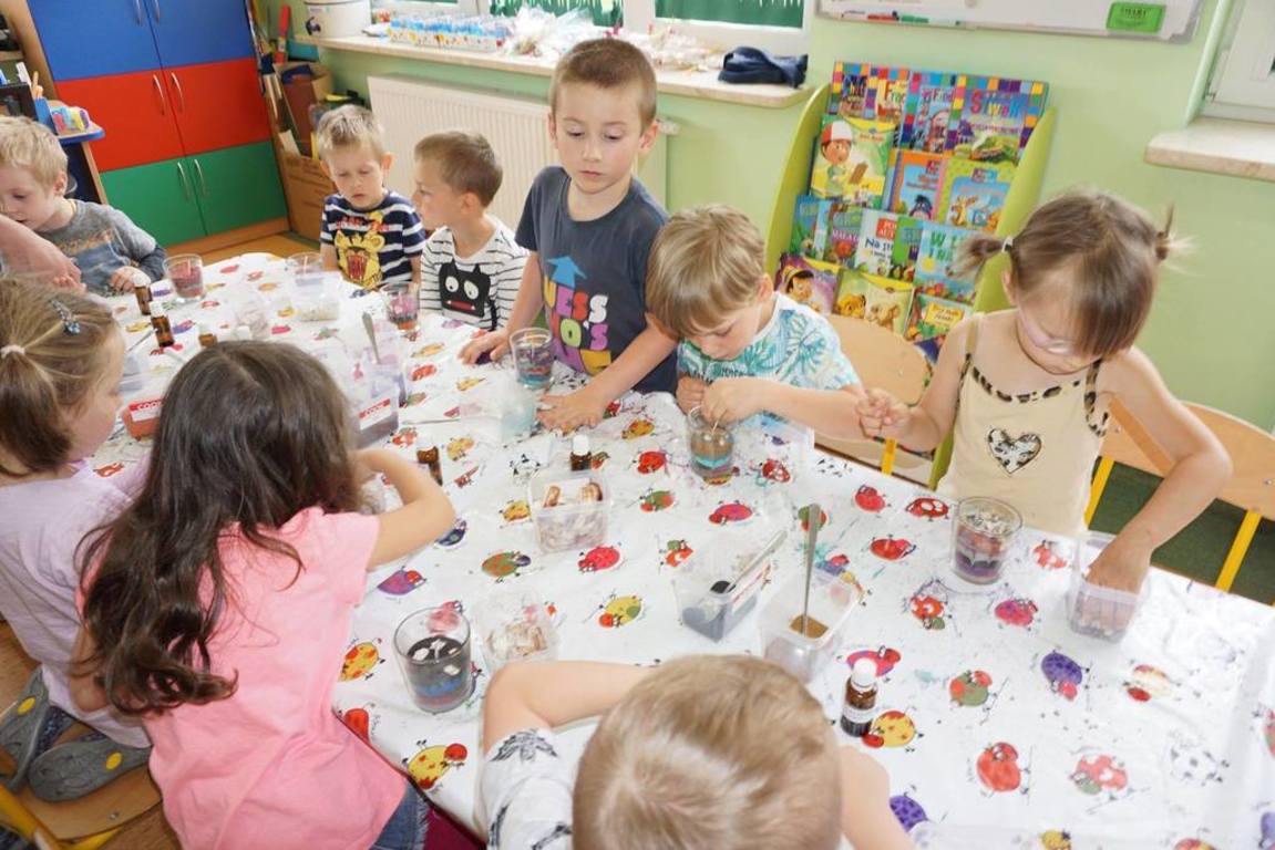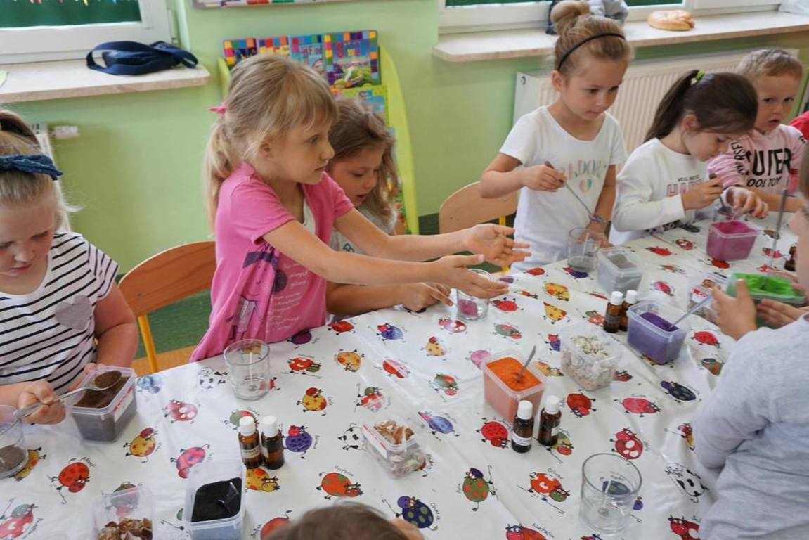 17 maja przedszkolaki wzięły udział w warsztatach świecowych, które odbyły się w naszym przedszkolu. Każde dziecko mogło wykazać się kreatywnością przy komponowaniu własnej świeczki wykorzystując przy tym: piasek dekoracyjny w różnych kolorach oraz muszelki. Wszystkie dzieci z wielkim zapałem zabrały się do pracy i stworzyły piękne kompozycje, które zostały zalane gorącą parafiną. Efekt końcowy będziemy podziwiać już niedługo podczas pikniku rodzinnego 26.05