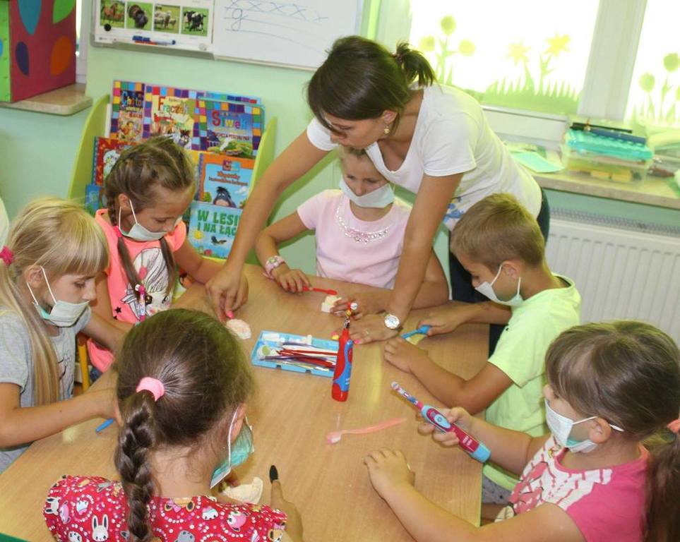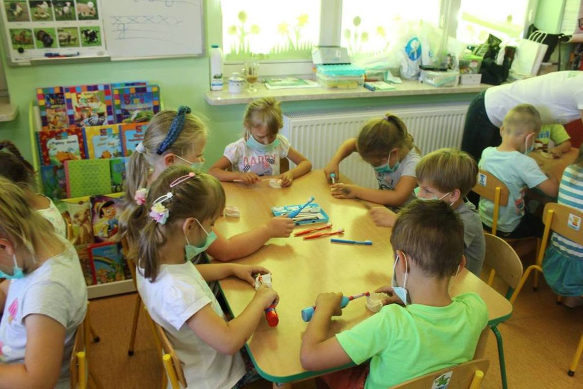 Dnia 8 czerwca dzieci z przedszkola wraz ze szkołą podstawową – klasy 0-3 uczestniczyły w programie edukacyjnym dla dzieci w zakresie profilaktyki próchnicy w formie teatrzyku z elementami nauki i zabawy, który poprowadziły dyplomowane higienistki stomatologiczne z Lublina.