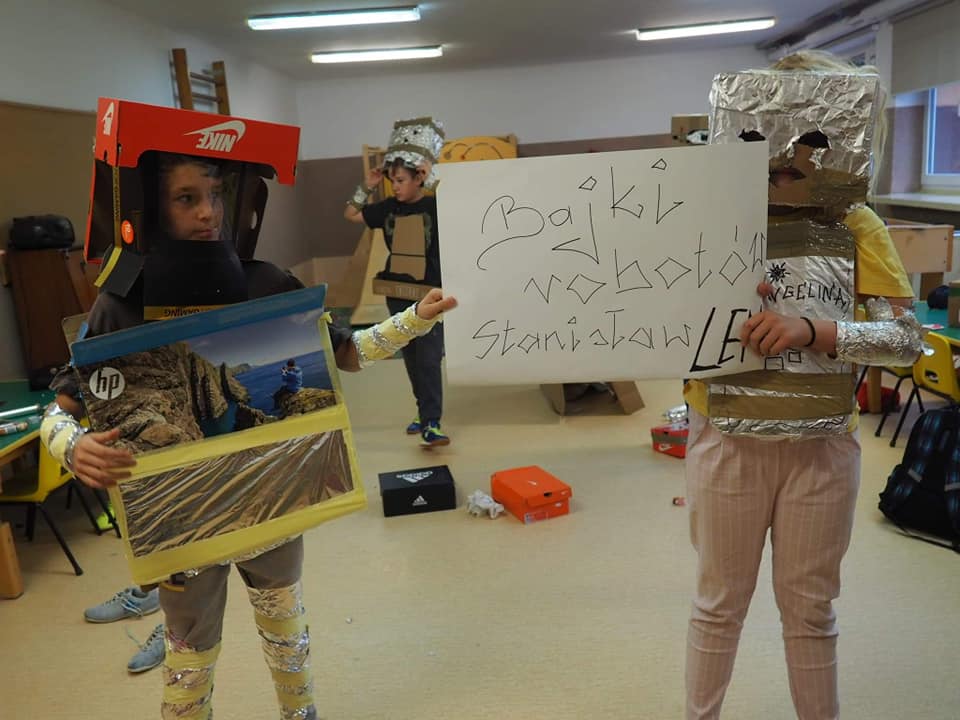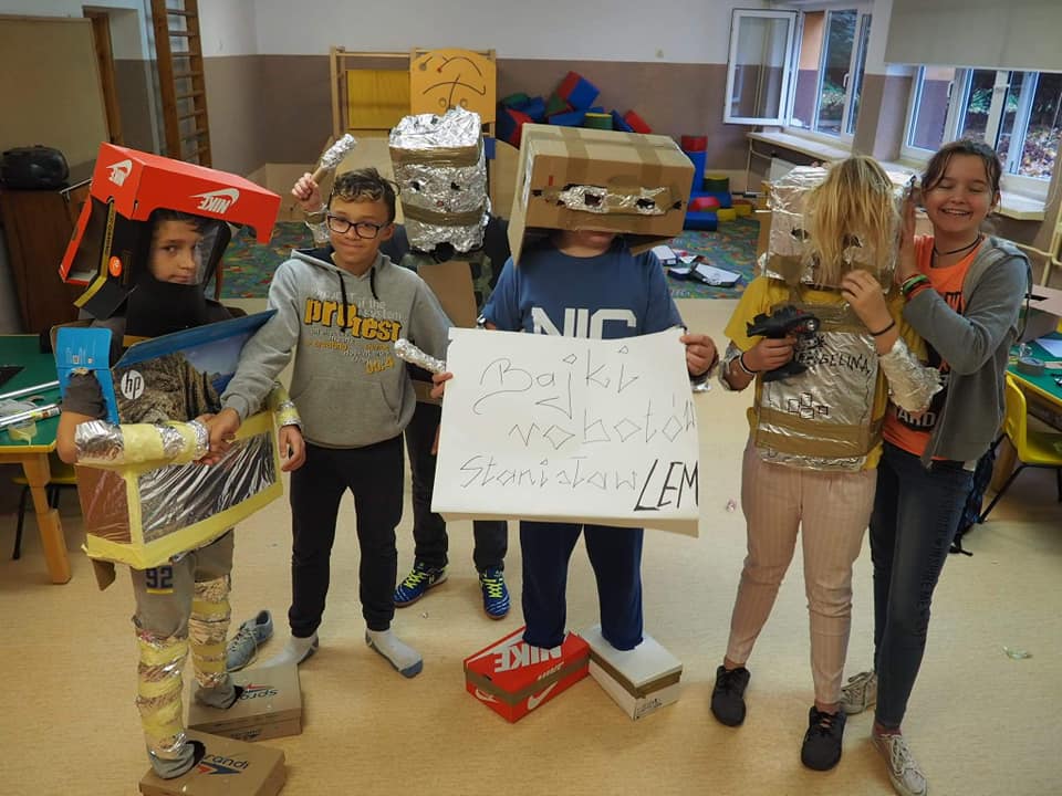 Przy okazji omawiania twórczości Stanisława Lema uczniowie klasy 6 budowali roboty, inspirując się jedną z bohaterek opowiadania - maszyną cyfrową. Dzieci wykazały się niezwykłą kreatywnością, a także współpracą w zespole. Zadanie było nie lada wyzwaniem, ale sprawiło wszystkim ogromną frajdę.