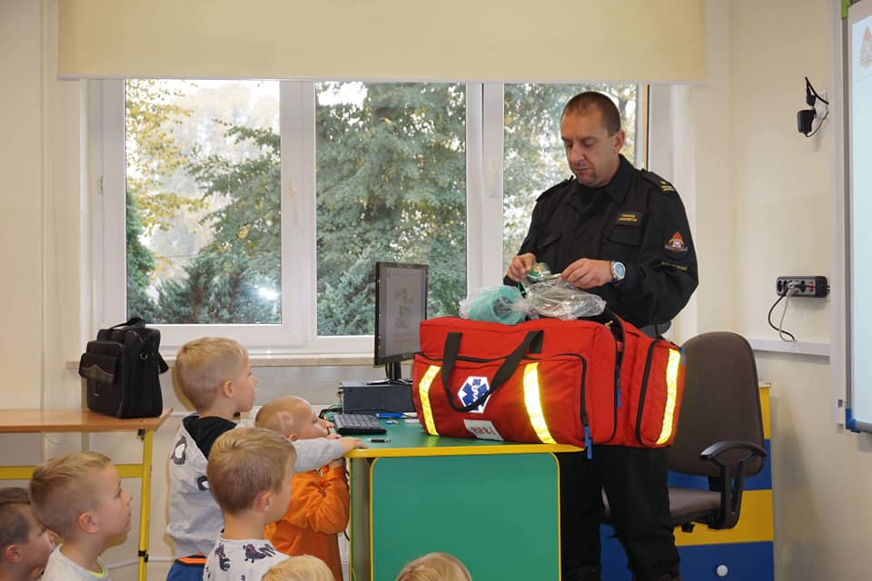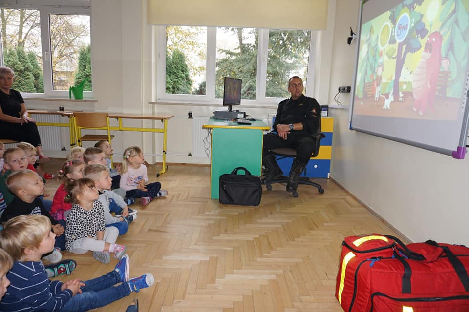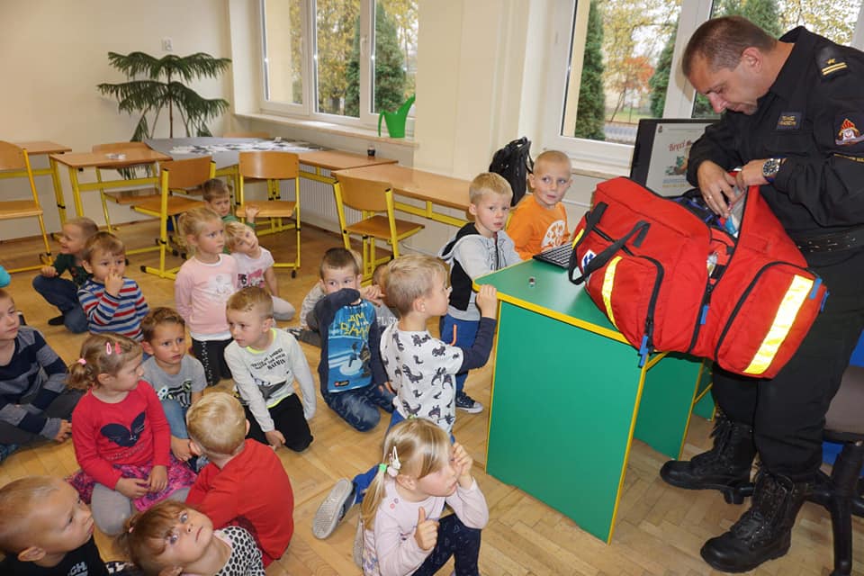 Co roku w naszym przedszkolu we wszystkich grupach wiekowych realizowana jest tematyka cykliczna związana z bezpieczeństwem. Właśnie dlatego nasze przedszkole 19 października odwiedził Naczelnik Wydziału ds. Operacyjnych KP PSP w Nowym Dworze Mazowieckim oraz Rzecznik Prasowy KP PSP w NDM Pan Tomasz Wołoszyn.