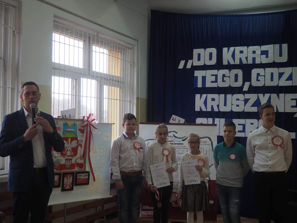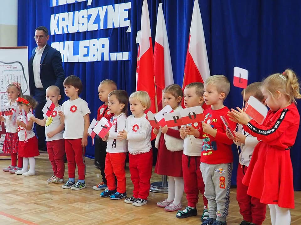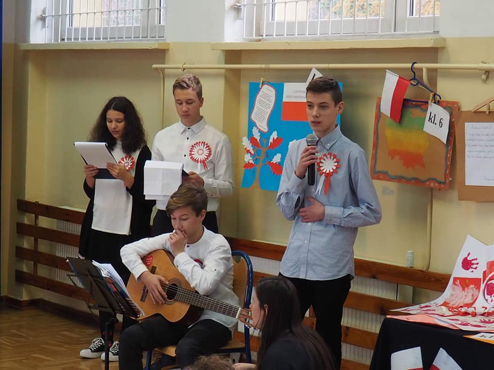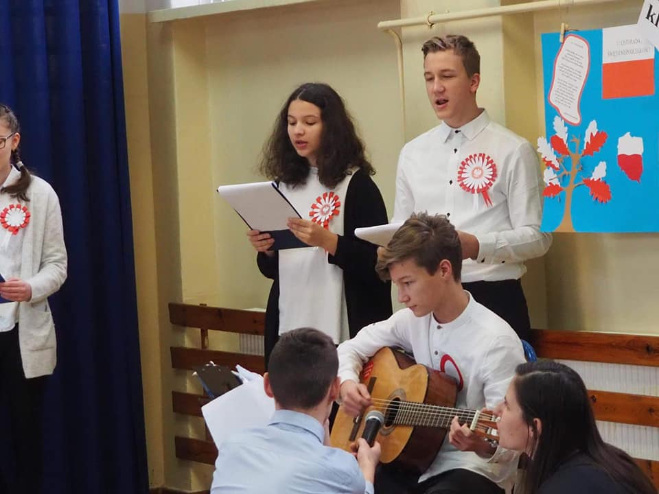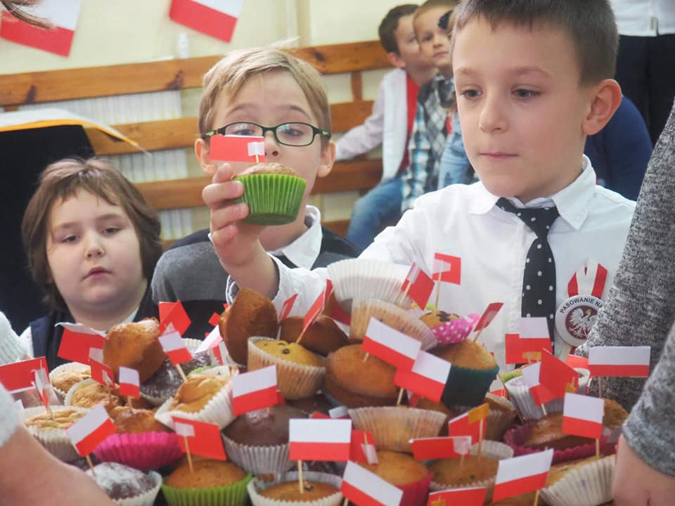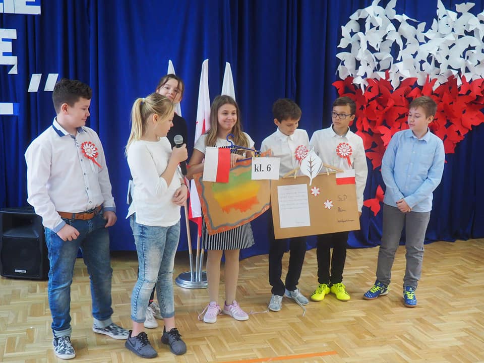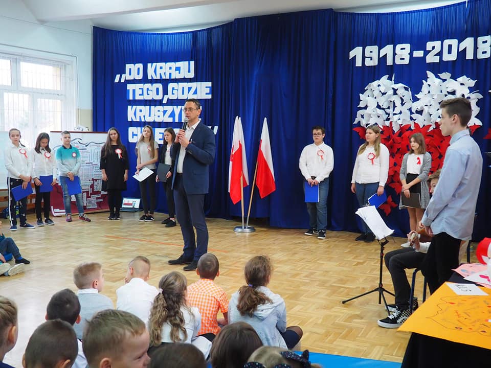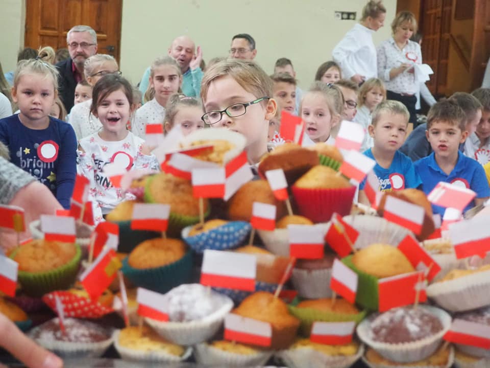 Dnia 13.11.2018r. społeczność naszego zespołu pięknie uczciła Święto 100-lecia Odzyskania Niepodległości. Uczniowie klas starszych pod kierunkiem pani Doroty Dzimińskiej zaprezentowali przedstawienie patriotyczne. Dzieci z przedszkola i szkoły podstawowej przygotowały w grupach prezenty dla Ojczyzny, które pokazały na forum społeczności. Były to: pomysłowy lapbook, mapa tematyczna, obraz patriotyczny, pięknie wykonane godło, a ponadto plakaty, pocztówki, flagi, wiersze i życzenia dla naszej ukochanej Ojczyzny. Nauczyciele wspólnie z uczniami odśpiewali hymn narodowy, a na zakończenie tej części uroczystości Samorząd Uczniowski poczęstował obecnych, własnoręcznie wykonanym tortem ze 100 babeczek !!! Tak rozpoczęły się obchody urodzin naszego kraju.