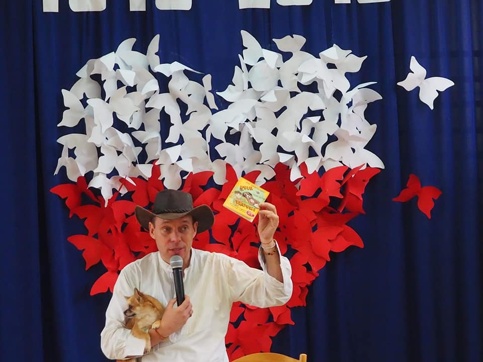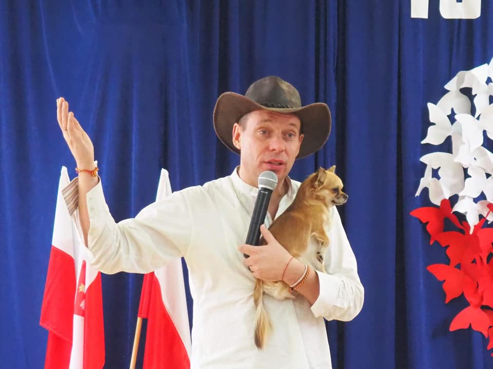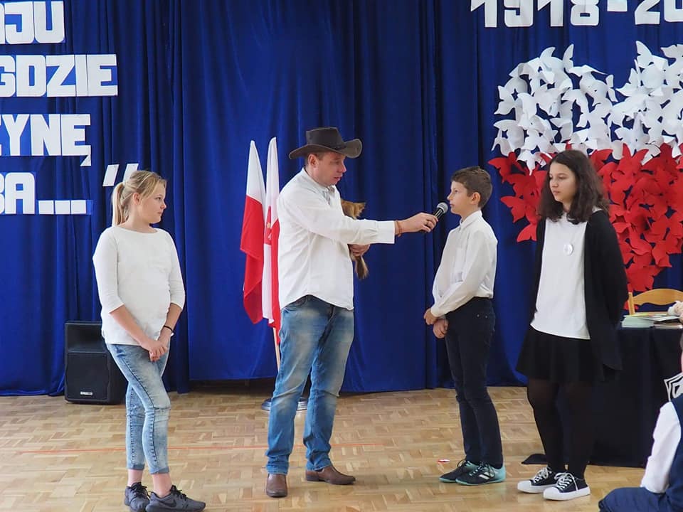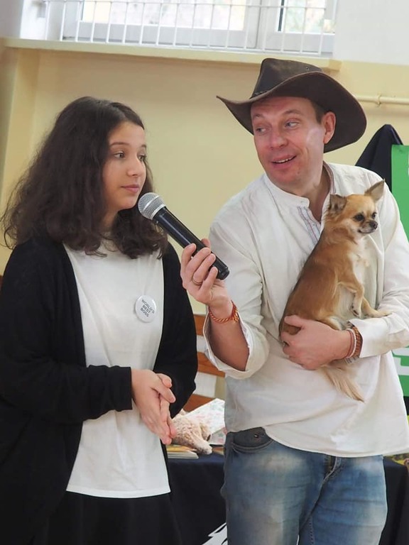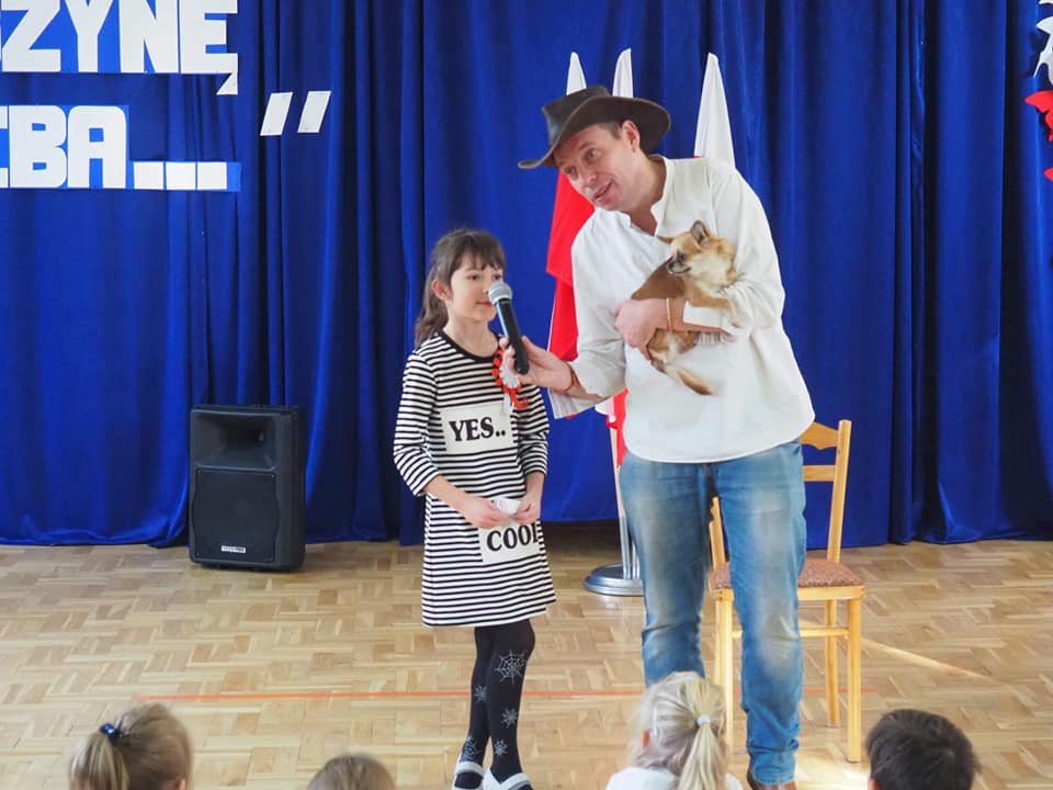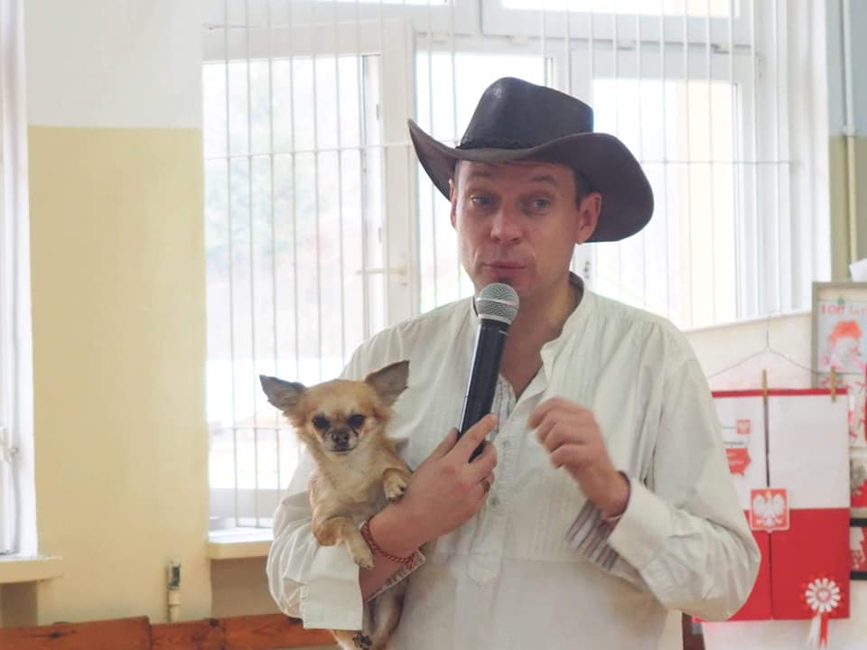 te słowa skierował dziś do nas niezwykły gość, Tom Justyniarski, pisarz i obrońca zwierząt. Od wielu lat zajmuje się ratowaniem porzuconych i niechcianych zwierząt: psów, kotów, koni oraz ptaków. Uważa, że kluczowa jest zmiana sposobu, w jaki ludzie traktują naszych braci mniejszych, a edukację w tej dziedzinie należy zaczynać już od najmłodszych lat. Nasi uczniowie