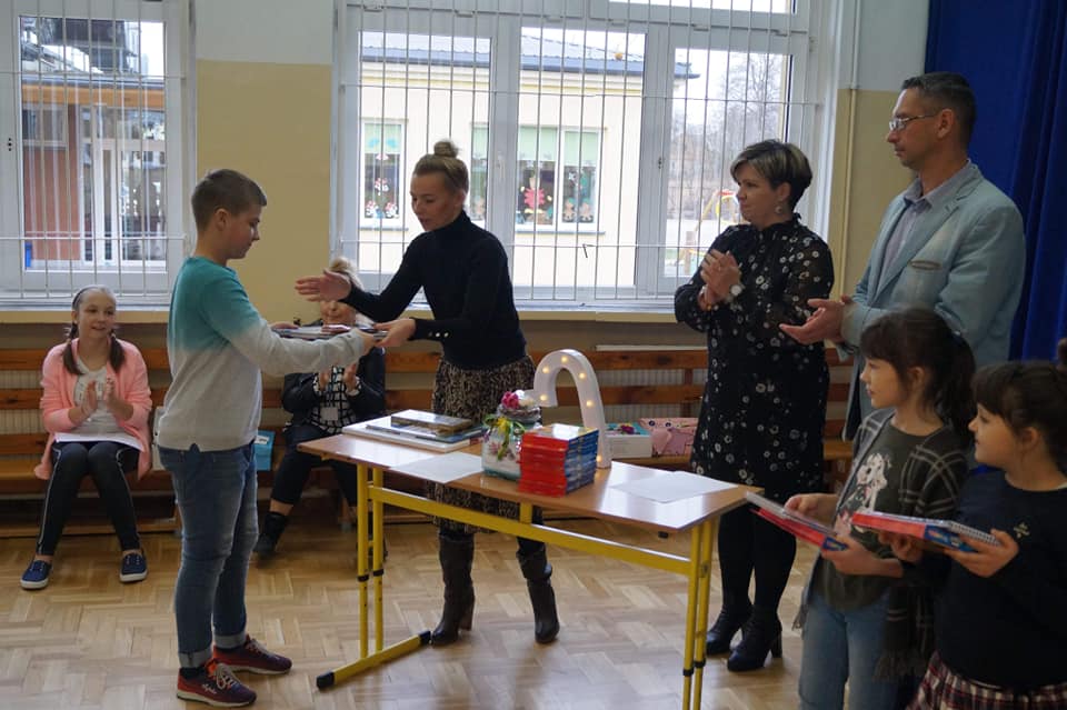 Każdy człowiek – wie to doskonale, choćby intuicyjnie, a przynajmniej wiedzieć powinien😉, że wachlarz życzliwych zachowań jest tak szeroki, jak szeroki jest wachlarz osób, z którymi na co dzień się spotykamy. Każdej z nich, bez wyjątku, możemy okazać serce i drobnym gestem rozjaśnić jej dzień. Dlatego wywołujmy uśmiech – często doprawiony zaskoczeniem, szczery i spontaniczny. Finał Dnia Żczliwości w naszej szkole miał podwyższoną temperaturę. Wolontariuszki zarażone wirusem pozytywnej energii przekazały całej społeczności niezwykłą moc! Tego dnia życzliwa komisja konkursowa wraz z Panem Dyrektorem rozstrzygnęła ogłoszony tydzień wcześniej konkurs. Niezależnie od zdobytej pozycji każdy zwyciężył i otrzymał zasłużoną nagrodę.