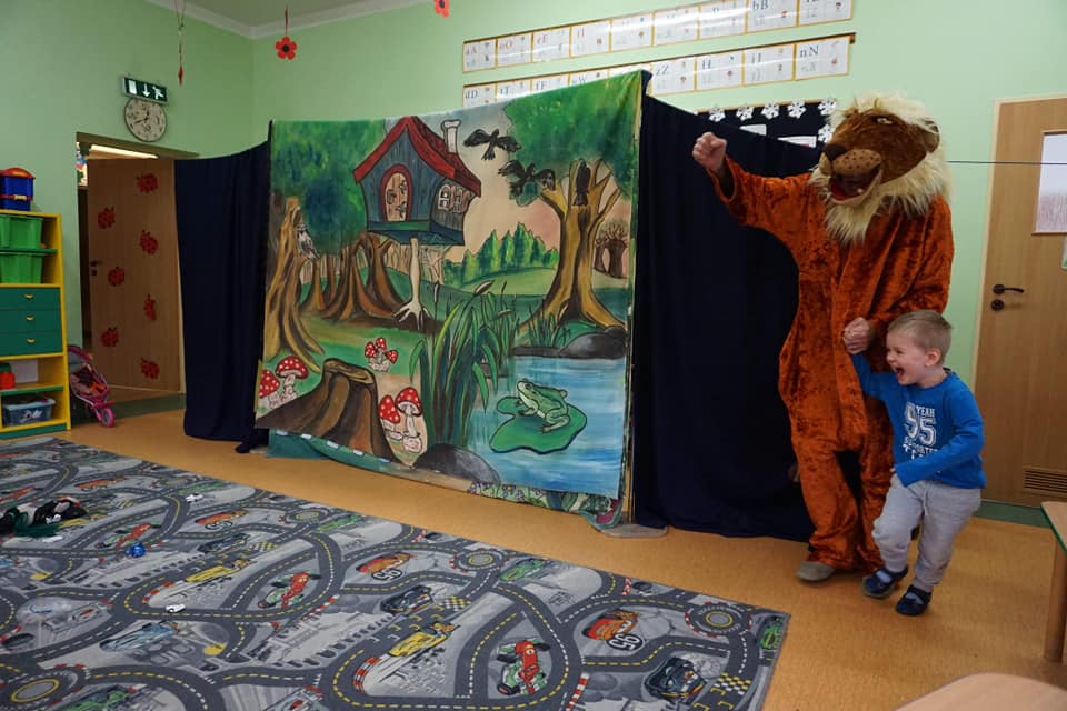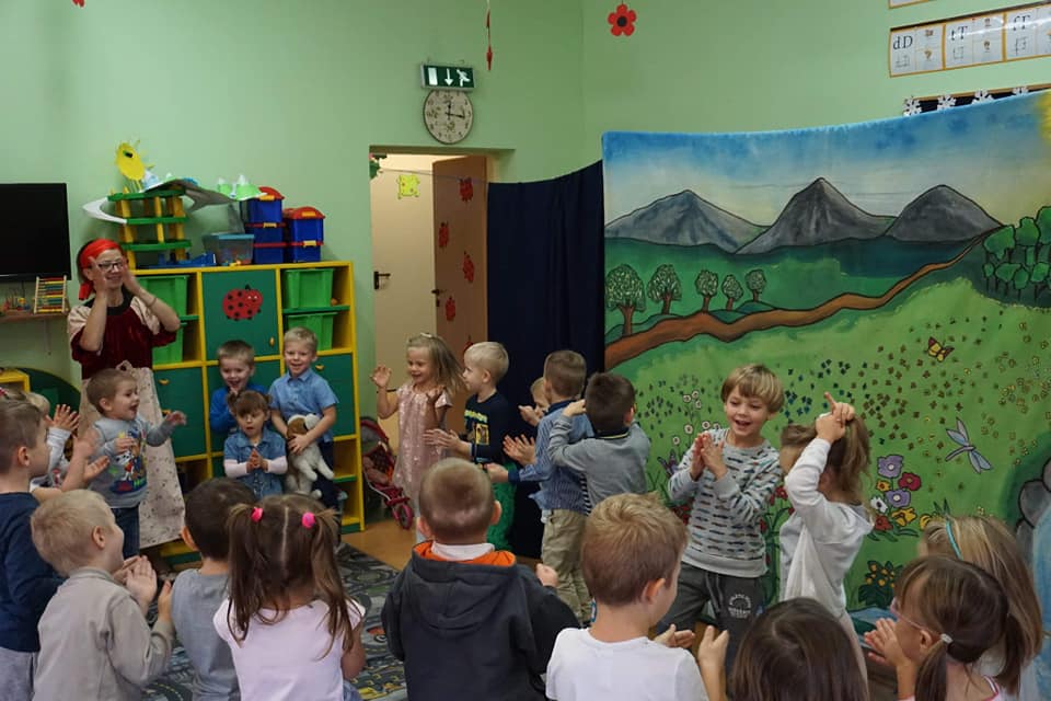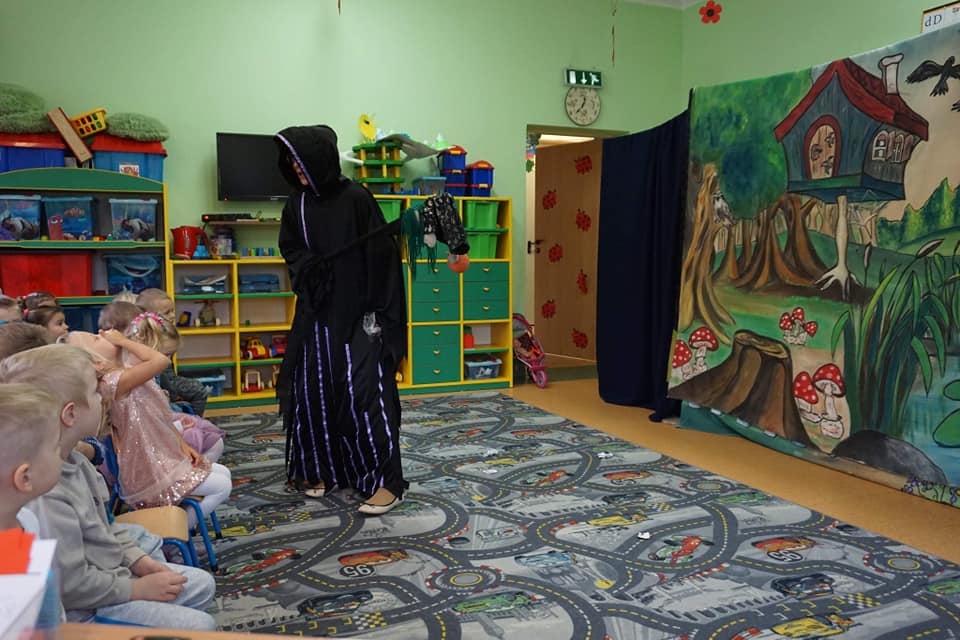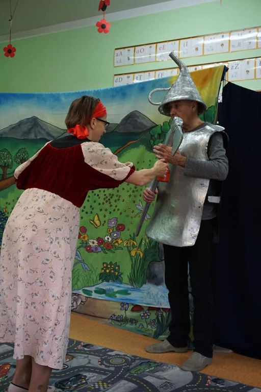 16 listopada nasze przedszkole odwiedzili aktorzy z krakowskiego teatru z przedstawieniem pt: Magiczna Kraina Czarnoksiężnika Ozona" .Była to opowieść o małej Dorotce, która mieszka na wsi wraz z wujkiem i ciocią oraz najlepszym przyjacielem – pieskiem Toto. Za sprawą potężnej wichury dziewczynka i Toto przenoszą się do magicznej krainy, którą włada tajemniczy Czarodziej Oz-on. Dzięki pomocy dobrej wróżki Dorotka dostaje pantofelki, które mają ją ustrzec przed złymi czarami strasznej Czarownicy. Dziewczynka wyrusza w drogę po zaczarowanej krainie z nadzieją, że wielki czarodziej Oz-on sprawi, by mogła wrócić do swych bliskich. Dorotka na swej drodze spotyka nowych przyjaciół: Stracha na Wróble, Blaszanego Drwala i Tchórzliwego Lwa.! Przedstawienie teatralne uczy młodego człowieka jak ważna jest przyjaźń, zaufanie i wzajemna współpraca.