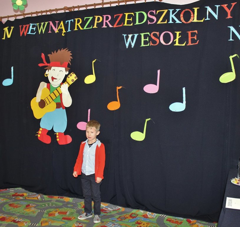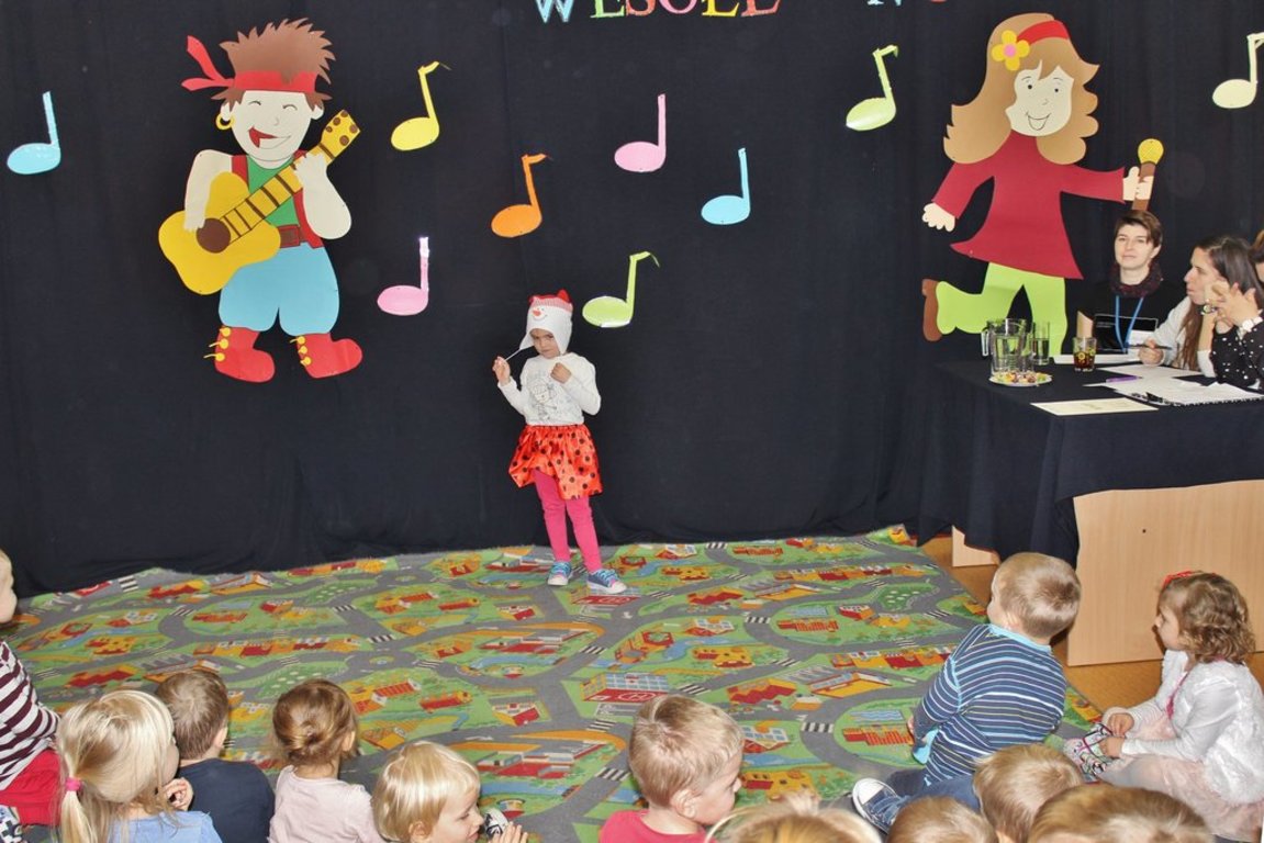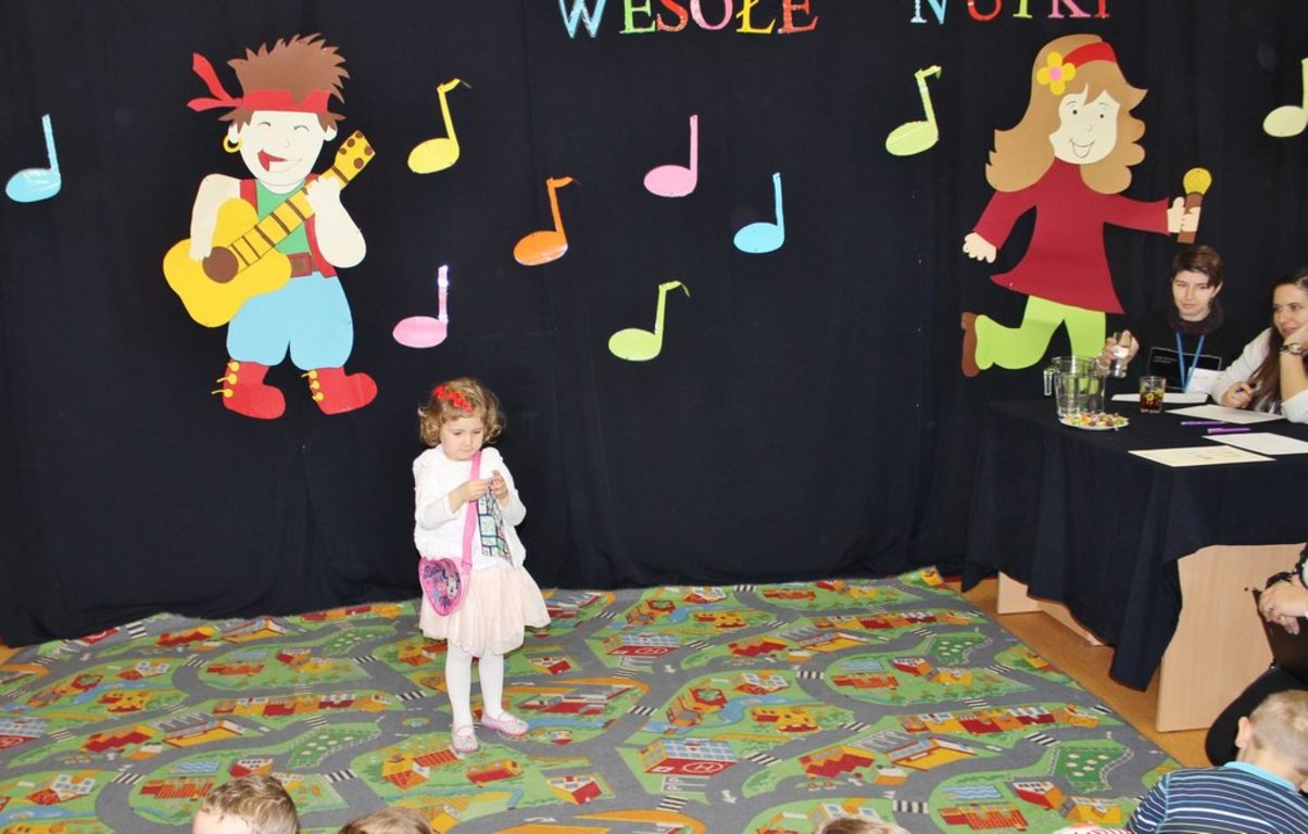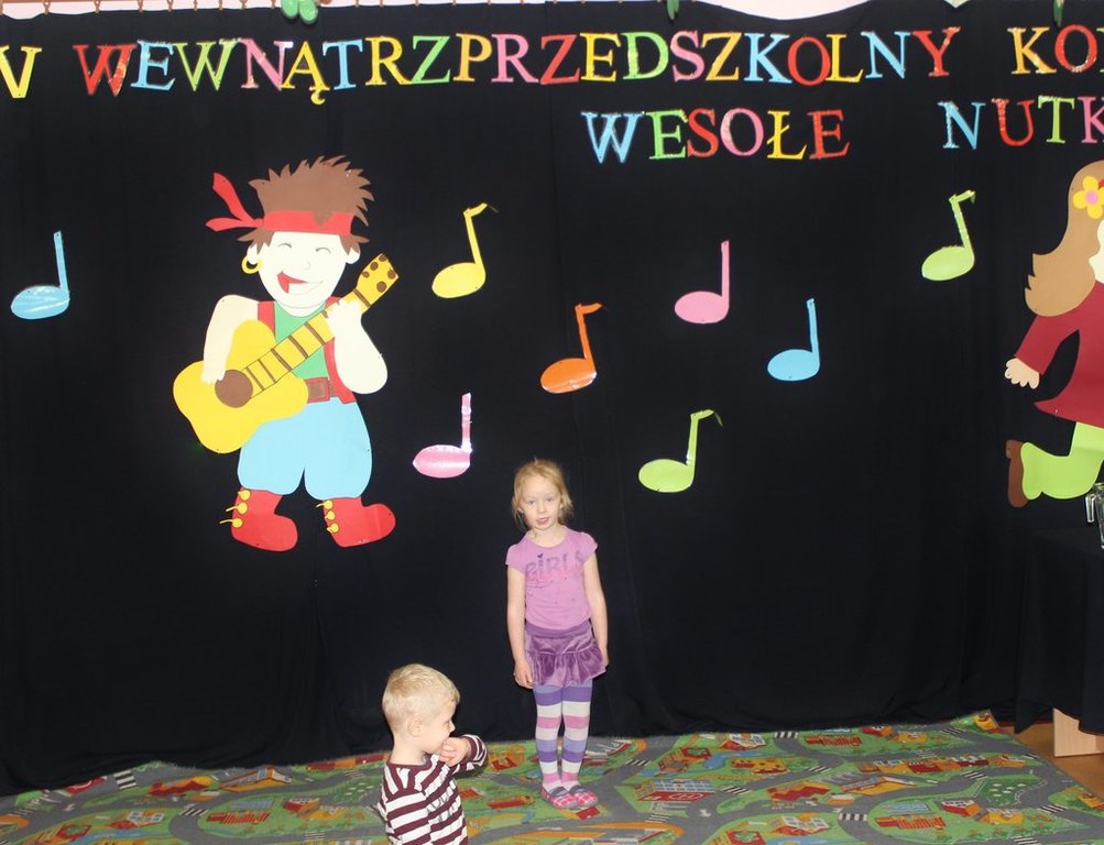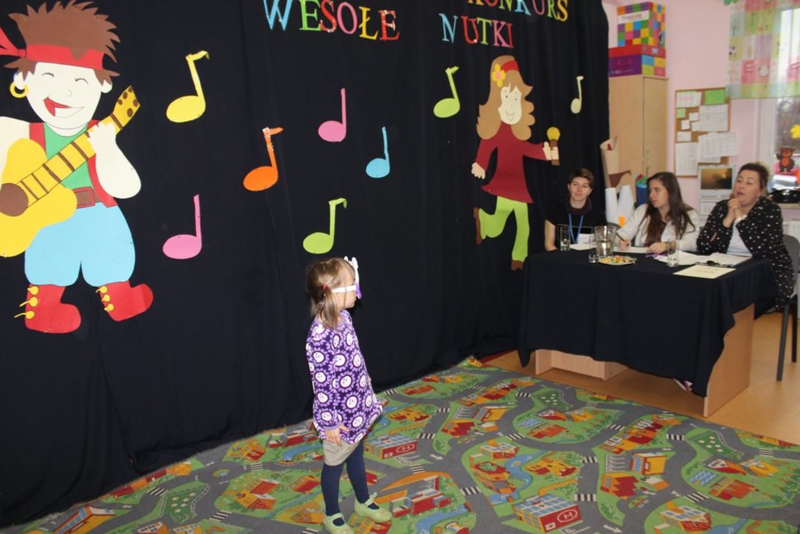 Pod koniec listopada w naszym przedszkolu odbył się poraz czwarty wewnątrzprzedszkolny Konkurs Piosenki Dziecięcej ,,Wesołe nutki”. Głównym celem konkursu było rozbudzenie u młodych wykonawców zamiłowania do śpiewu i muzyki, kształtowanie wrażliwości artystycznej oraz prezentacja uzdolnień muzycznych przedszkolaków.