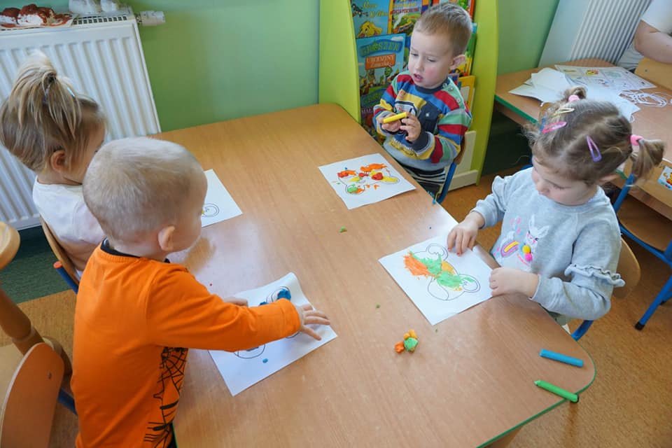 Świetnie bawiły się w zabawy ruchowo- naśladowcze „Jestem aktorem w krainie emocji” czy „Zaczarowane postacie”. Na koniec zajęć wykonały prace plastyczną pt „Maski teatralne”.