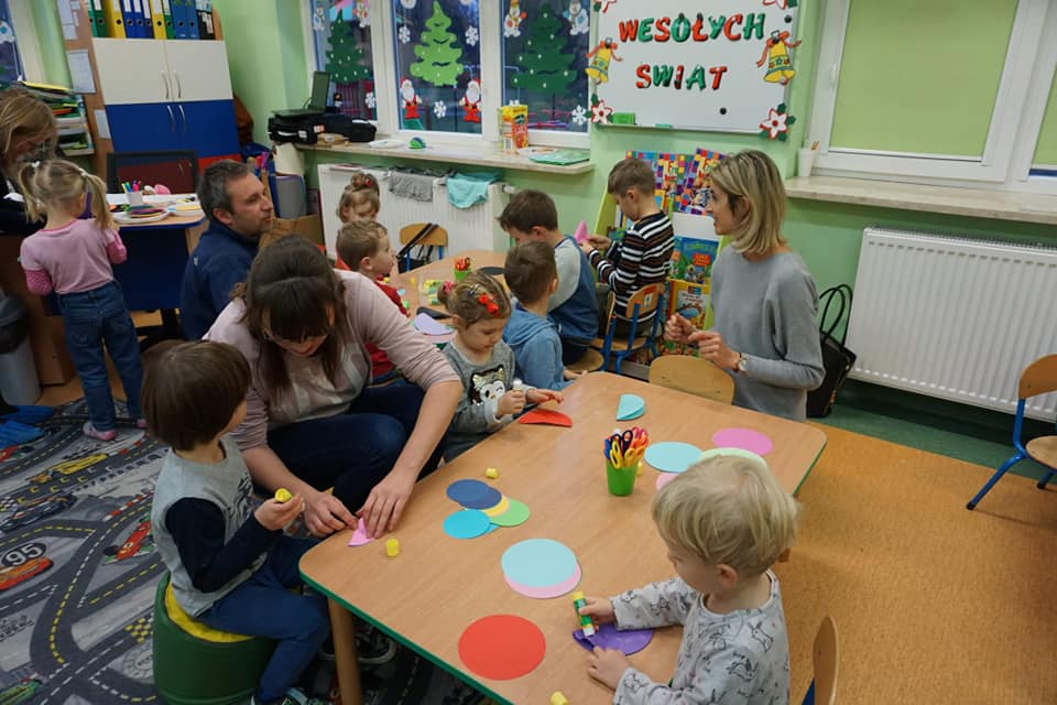 Dnia 4 grudnia w naszym przedszkolu w grupie Biedronek odbyły się świąteczne warsztaty bożonarodzeniowe z udziałem rodziców. Rodzice i dzieci wspólnie wykonywali piękne świąteczne papierowe ozdoby, wykazując przy tym wiele pomysłowości i kreatywności. Niektórzy rodzice oprócz zaprezentowanych przez nauczycielkę ozdób takich jak: dzwoneczek, aniołek, mikołaj, bombka wykonali również prace własnego pomysłu jak np. piękna sowa.