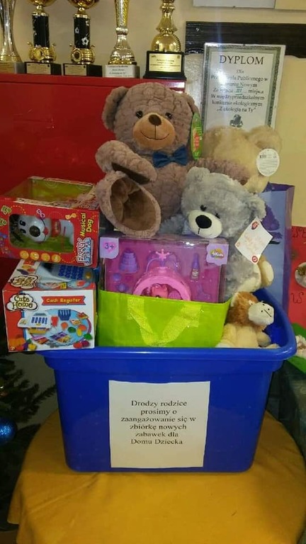 Święta Bożego Narodzenia to doskonała okazja do czynienia dobra, również i w naszym przedszkolu została zorganizowana zbiórka zabawek. Rodzice naszych przedszkolaków czynnie się zaangażowali w zbiórkę dla Domu Dziecka im.J. Korczaka w Płońsku. Za co serdecznie dziękuję Pani wicedyrektor Bernarda Knaf i wychowawczynie.
