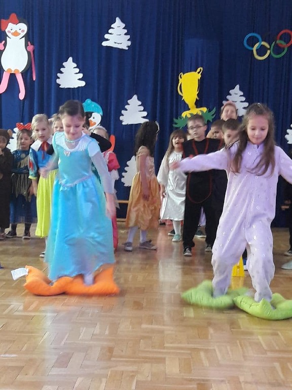Gdyby nie to, że w najbliższą niedzielę odbędzie się 27 finał WOŚP (nasz KWIAT też tam będzie!!!), moglibyśmy uznać czwartkowe przedpołudnie za najbardziej gorące w styczniu. Dzięki przychylności i wsparciu Rady Rodziców, 10 stycznia uczniowie naszej szkoły bawili się na wspaniałym balu karnawałowym. Tematem przewodnim w tym roku była „Olimpiada zimowa w krainie lodu!!!”. I jak na olimpiadę przystało nie obeszło się bez konkurencji sportowych. Wszyscy bez wyjątku dali się ponieść karnawałowemu szaleństwu. Zabawa dostarczyła nam wiele radości i stała się okazją do rozwijania śmiałości w kontaktach z rówieśnikami. Bo gdzież jak nie tu, na jednym parkiecie jednocześnie, tańczył Spider - Man i Jednorożec, policjant i żabka czy kierowca Formuły 1 i Darth Vader ?