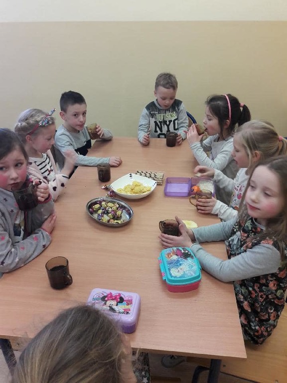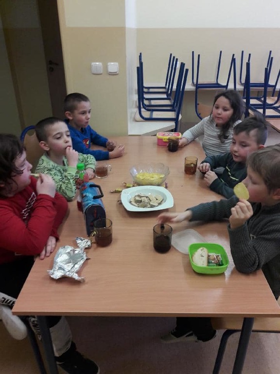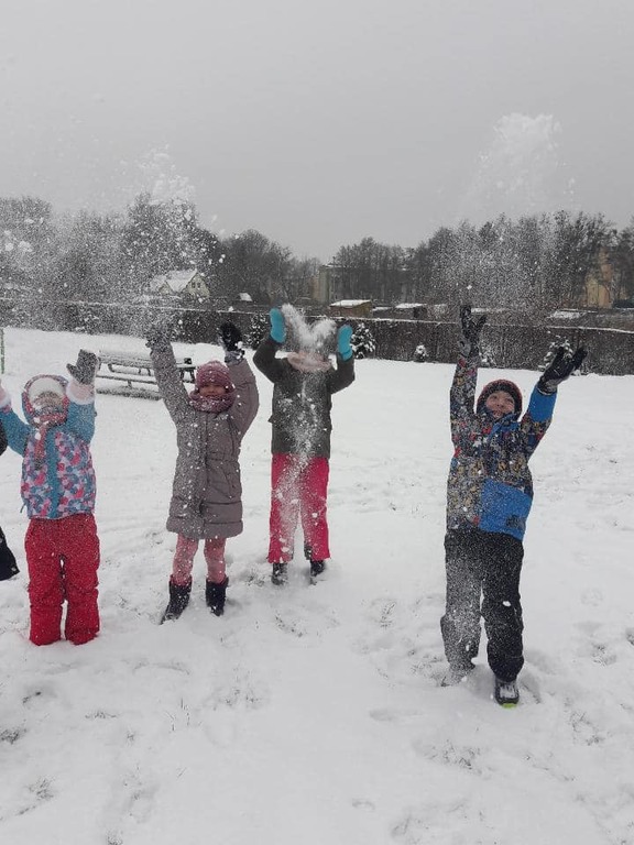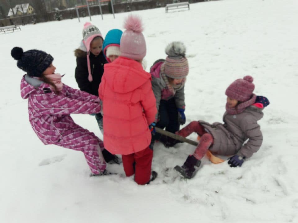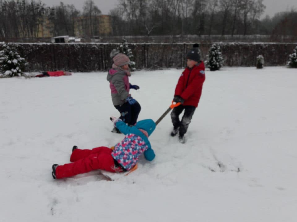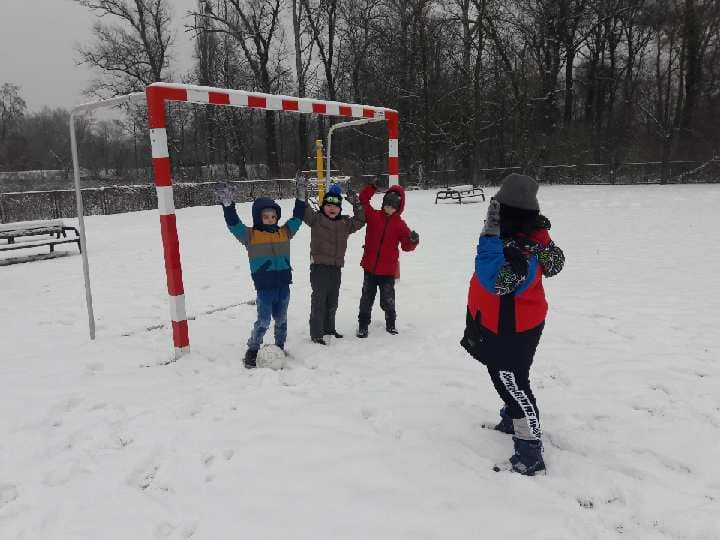 Oj nie taka znowu zła, powiedzieliby uczniowie klasy pierwszej po piątkowych zabawach na śniegu. Trzeba tylko odpowiednio się ubrać, obowiązkowo ciepłe rękawiczki i ,,gacie na wacie” jak to mówią pierwszoklasiści. No i do zabawy!!!!! Rzucanie śnieżkami, robienie aniołków na śniegu, wyścigi po głębokich zaspach czy gra w piłkę nożną na zaśnieżonym boisku to tylko kilka z pomysłów jakie mieli uczniowie podczas śnieżnych zabaw. Najbardziej jednak wszystkim podobała się jazda na łopacie do odśnieżania pana Wiesia. Bo co zrobić kiedy sanek brak? Łopata wtedy sprawdza się wyśmienicie. Wcale nie chciało nam się wracać do szkoły. A tu wypiliśmy ciepłą herbatę, zjedliśmy słodkie przekąski i po prostu cieszyliśmy się z miło spędzonego czasu.