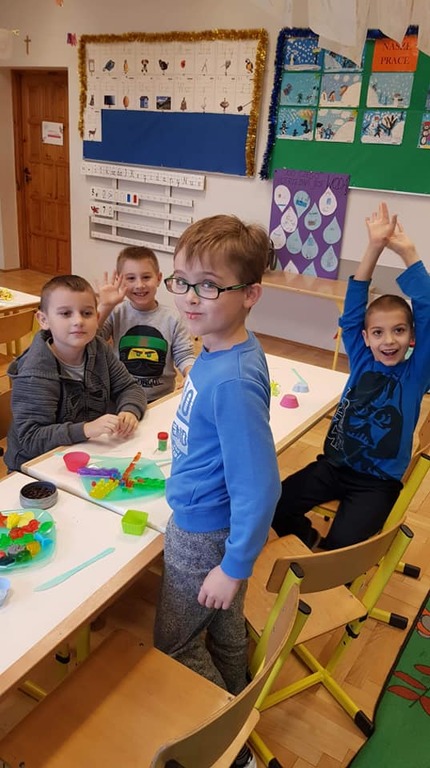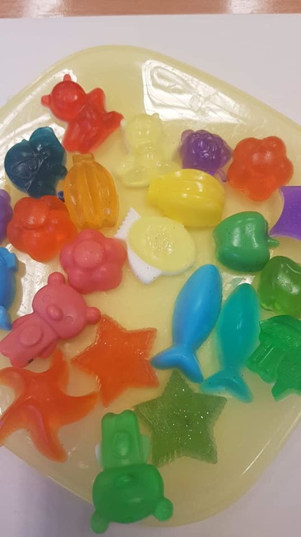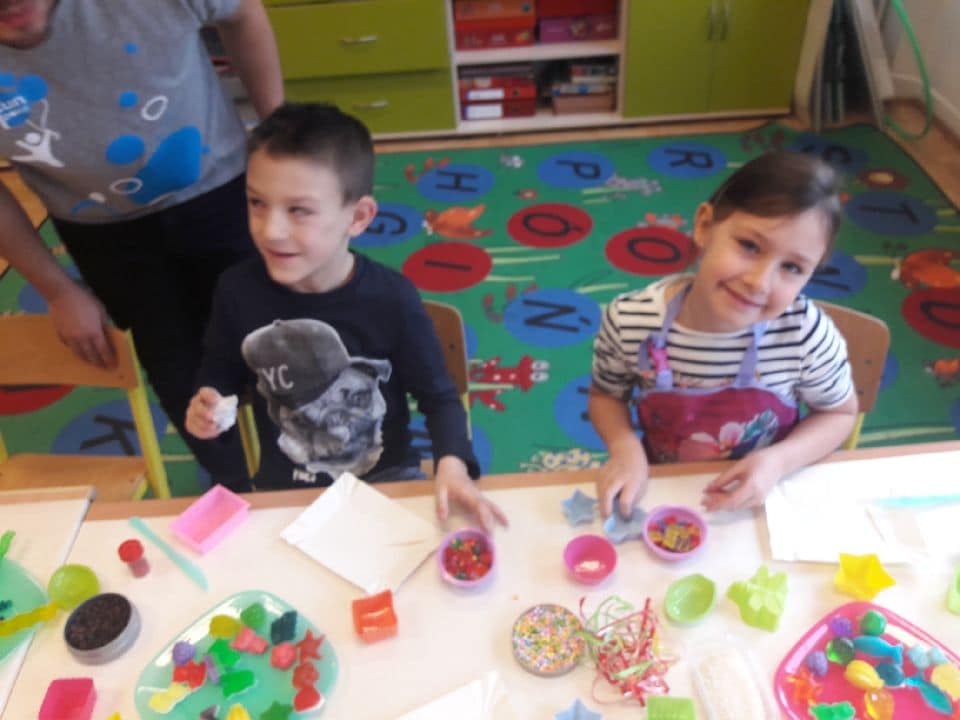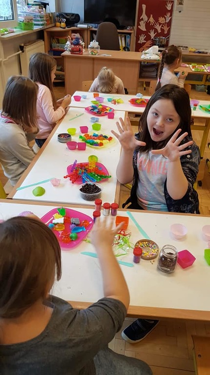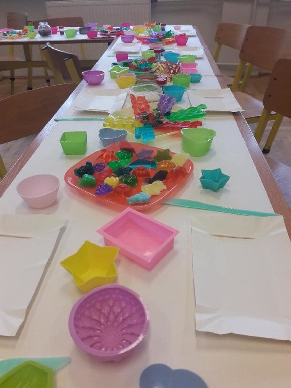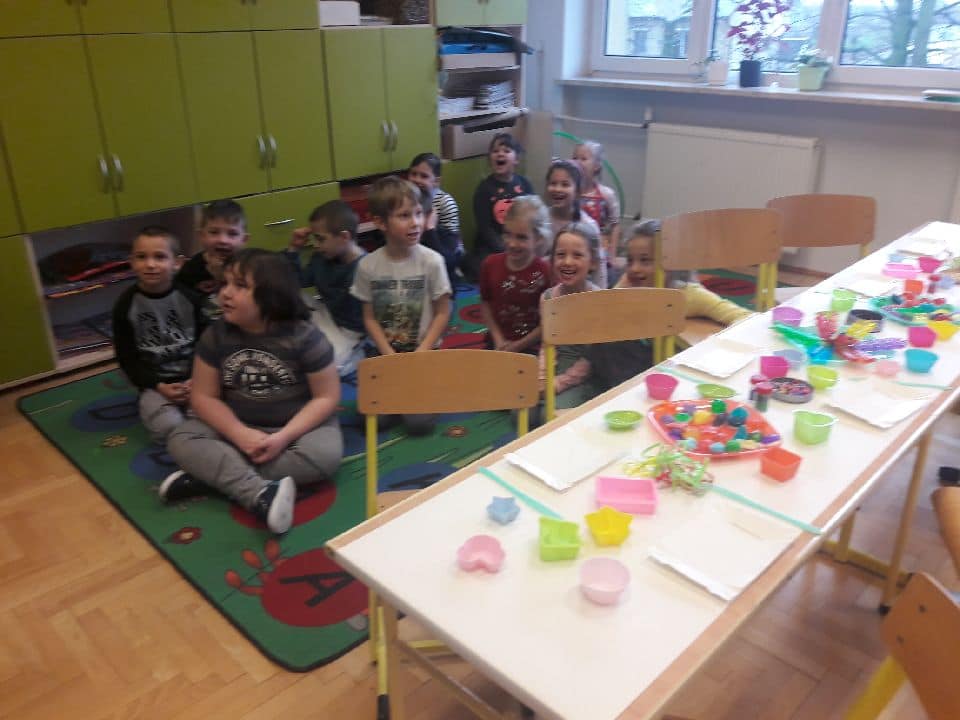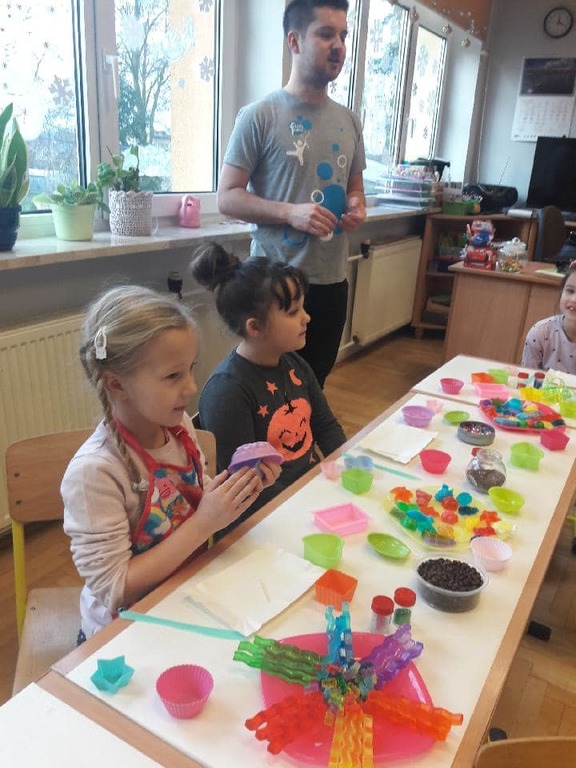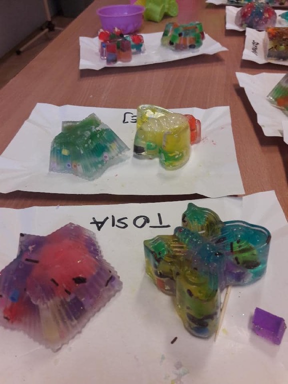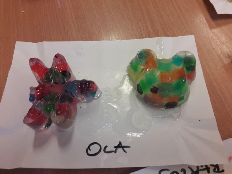 ,,Mydło wszystko umyje, nawet uszy i szyję…” ojej, aż szkoda wymydlać takie piękne , kolorowe i pachnące mydełka jakie zrobili uczniowie klasy I-ej i II-ej na czwartkowych warsztatach. Sama praca nad zrobieniem takiego mydełka okazała się być niezwykle przyjemna i ciekawa. Do kolorowej formy można było włożyć dosłownie wszystko : pachnące ziarna kawy, kolorowe koraliki, glicerynowe muszelki, gwiazdki, czy inne skarby. Następnie zalane to zostało ciekłą gliceryną, czyli masą mydełkową i skropione dowolnie wybranym zapachem: gumy balonowej, czekolady, truskawki, bryzy morskiej. Teraz już tylko czekamy aż mydełko zastygnie i za chwilę jest już gotowe!!! Wszystkie wyszły przepięknie, a powodem tego była nieograniczona niczym nasza wyobraźnia i niezwykle kolorowe i różnorodne elementy z jakich tworzyliśmy nasze mydełka. Takim cudeńkiem to aż chce się mydlić rączki, albo może jednak je komuś podarować? Przecież za chwilę mamy Dzień Babci i Dziadka, a to może być doskonały prezent na tę okazję. Zdecydujcie sami.