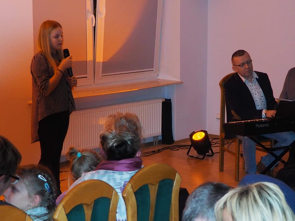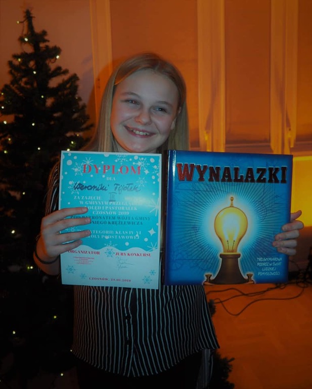 Uczennica klasy 6 Weronika Fijołek, wzięła udział w Gminnym Przeglądzie Kolęd i Pastorałek pod patronatem wójta gminy Czosnów. Dziewczynka przepięknie zaśpiewała kolędę pt. "Zwiastowanie", znaną też jako "Mario, czemu pobladłaś?" przy akompaniamencie pana Ireneusza Dwojaka. Z ogromną radością przyjęliśmy wiadomość, że Weronika zajęła 3 miejsce !!! Jury, w skład którego weszli: p. Sylwia Matulewska, p. Barbara Biernat Karp i p. Michał Jelonek, podsumowując przegląd stwierdziło, że wystąpiły dziś niezwykłe perełki. Weronice składamy ogromne gratulacje i życzymy dalszych sukcesów.