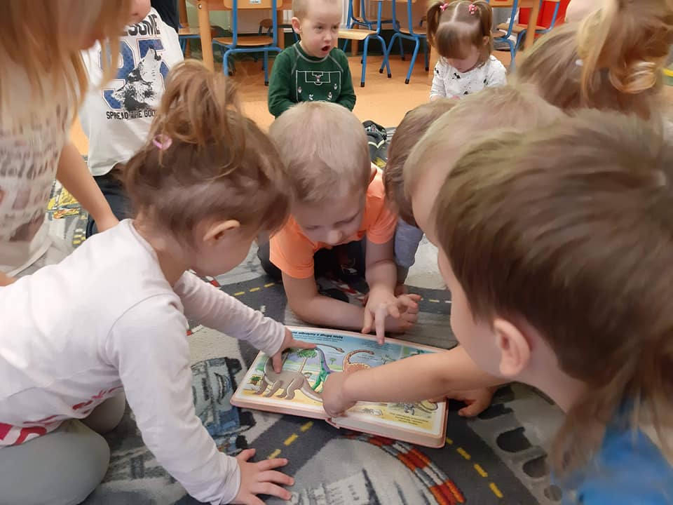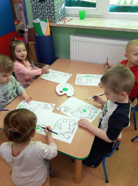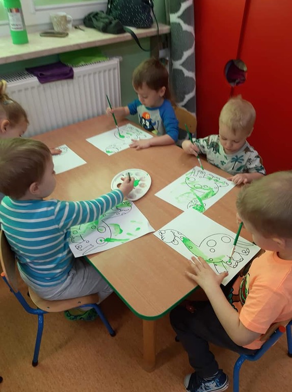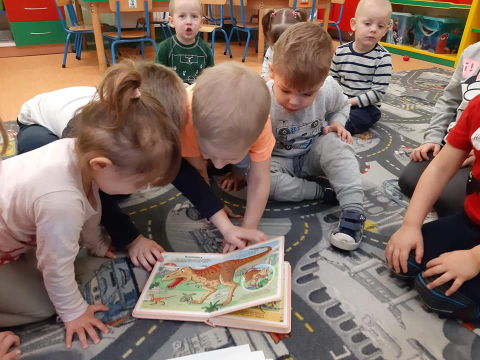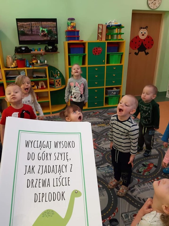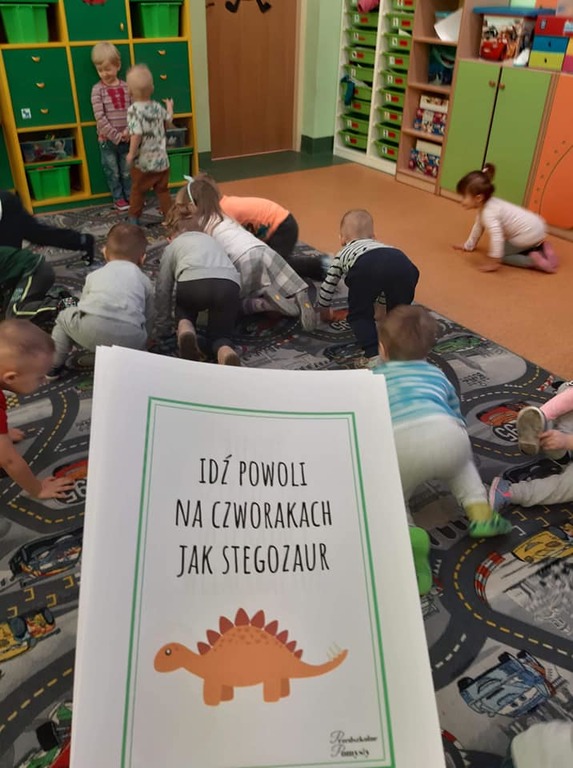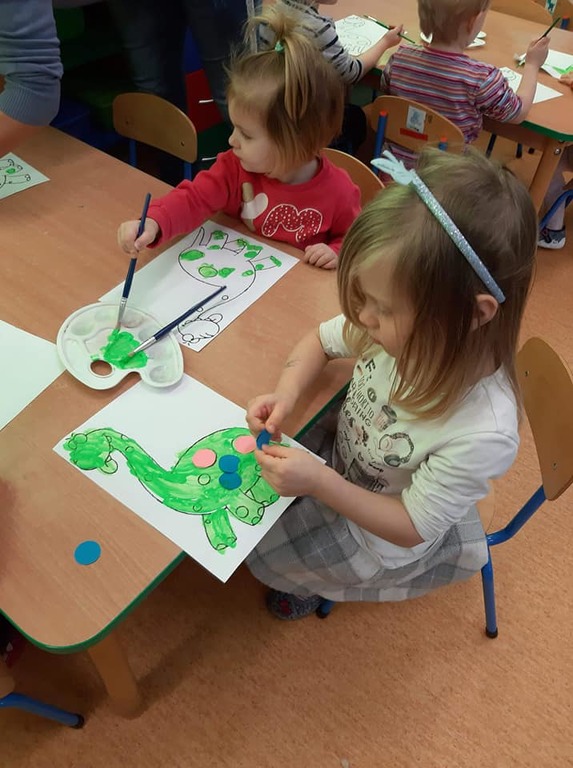 26 lutego obchodziliśmy w grupie Biedronek Dzień Dinozaura. W związku z tym dzieci oglądały, książki i plansze dydaktyczne o dinozaurach. Dzieci poznały rodzaje dinozaurów, ich wygląd oraz warunki w jakich żyły. Każdy z nich miał możliwość wykopania skamieniałości dinozaura z piasku. Tego dnia nie zabrakło także zabaw ruchowych "Dinozaury chodzące, dinozaury fruwające" oraz zadań tematycznych. Biedronki wysłuchały bajki o dobrym dinozaurze, a na koniec wykonały kolorowe prace plastyczne.