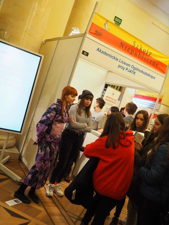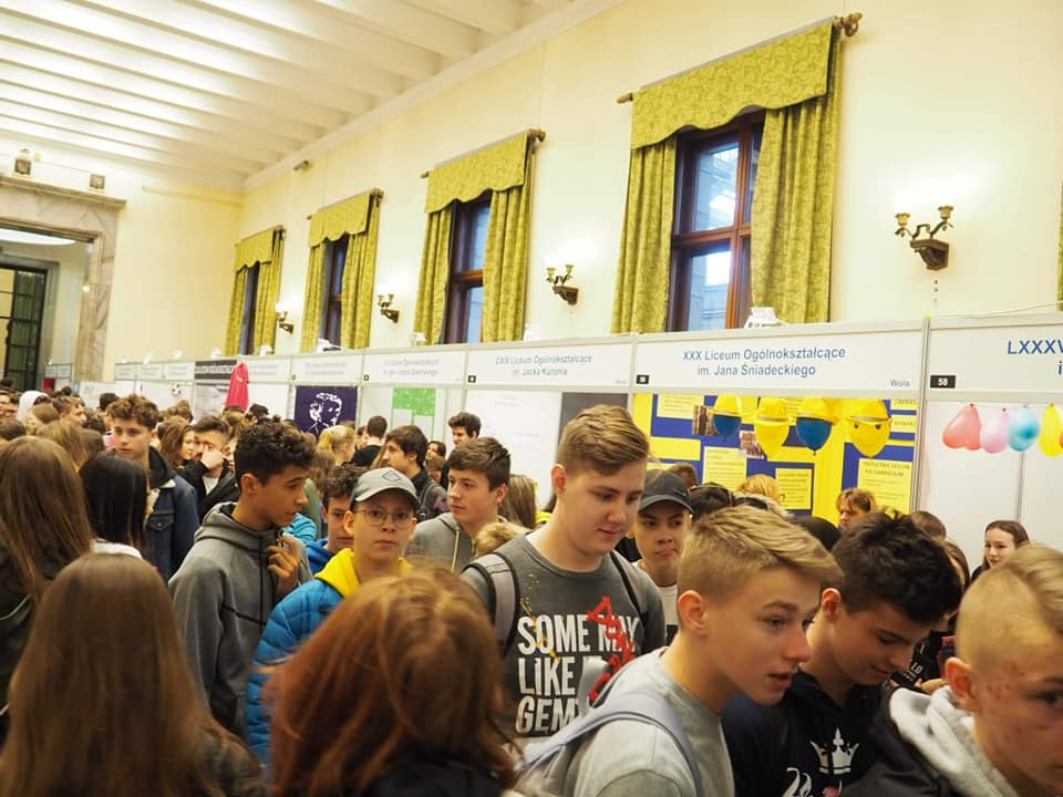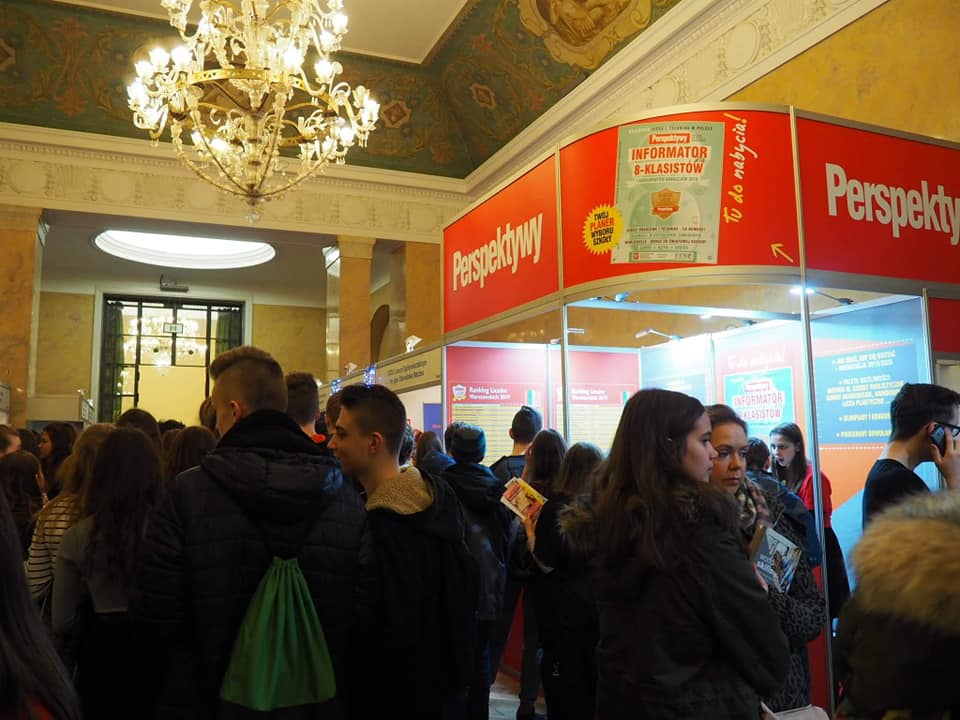 Uczniowie klasy 8 biorą udział w salonie edukacyjnym "Perspektywy". Szkoły ponadpodstawowe z Warszawy przygotowały ofertę dla przyszłych kandydatów. Stoiska wystawowe w Pałacu Kultury są oblegane przez tłumy 8-klasistów, którzy mogą porozmawiać z uczniami i nauczycielami wielu liceów i techników. Wystawy są bardzo atrakcyjne, a atmosfera niesamowicie gorąca😉