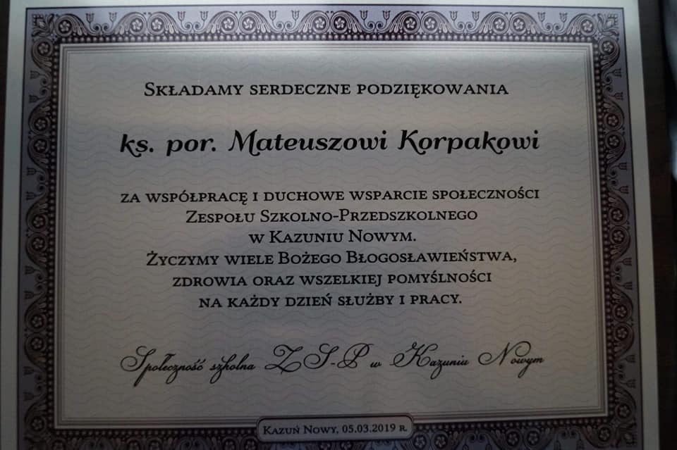 5 marca 2019 r. w Zegrzu oficjalnie pożegnaliśmy ks. porucznika Mateusza Korpaka - kapelana 2 Mazowieckiego Pułku Saperów w Kazuniu Nowym. Serdecznie dziękujemy za ponad 3 lata fantastycznej współpracy.