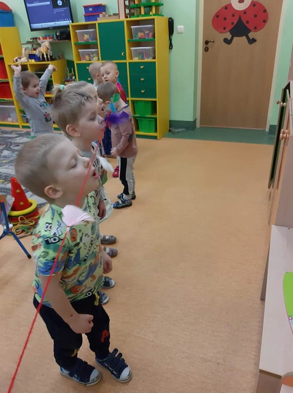 6 marca we wszystkich krajach Unii Europejskiej obchodzony jest "Europejski Dzień Logopedy". Celem tego dnia jest rozpowszechnianie wiedzy logopedycznej, stworzenie warunków do szybkiej i rzetelnej konsultacji, informacji i diagnoz osobom, a zwłaszcza dzieciom z zaburzeniami mowy oraz pomoc zainteresowanym w rozwiązywaniu problemów z komunikacją słowną. W związku z tym tego dnia w Biedronkach został zorganizowany dzień zabaw logopedycznych. Celem tego dnia było usprawnienie aparatu artykulacyjnego dzieci 3-letnich poprzez liczne ćwiczenia oddechowe, fonacyjne służące wydłużaniu fazy wydechowej, kształcenie prawidłowej fonacji samogłosek, rozwijanie sprawności ruchowej oraz podnoszenie sprawności graficznej. Przedszkolaki bardzo chętnie uczestniczyły w przygotowanych zajęciach, a proponowane ćwiczenia warg, języka i żuchwy oraz podniebienia usprawniły narządy mowy. Wiele ciekawych i kolorowych pomocy dydaktycznych, jakie zostały przygotowane na zajęcia np. kolorowe piórka, styropianowe jajka, kolorowe piłeczki, słomki, gry planszowe podniosły dodatkowo poziom atrakcyjności zajęć. Po zabawie w sali Biedronki udały się do szkoły do gabinetu logopedycznego i z okazji Święta Logopedy złożyły życzenia naszej Pani Agnieszce.