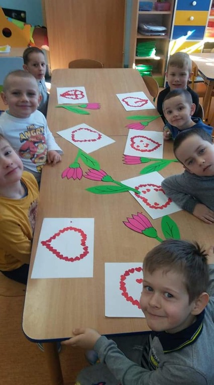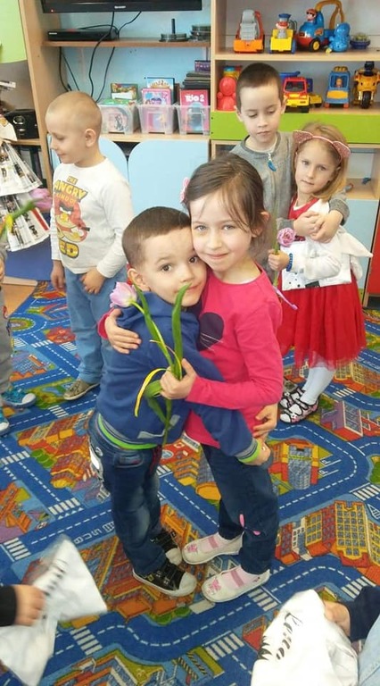 Dnia 8.03.2019 dziewczynki z grupy Pszczółki obchodziły Dzień Kobiet. Chłopcy każdą dziewczynkę obdarowali kwiatkiem i laurką. Największą niespodzianką były jednak koszulki z imionami małych kobietek.