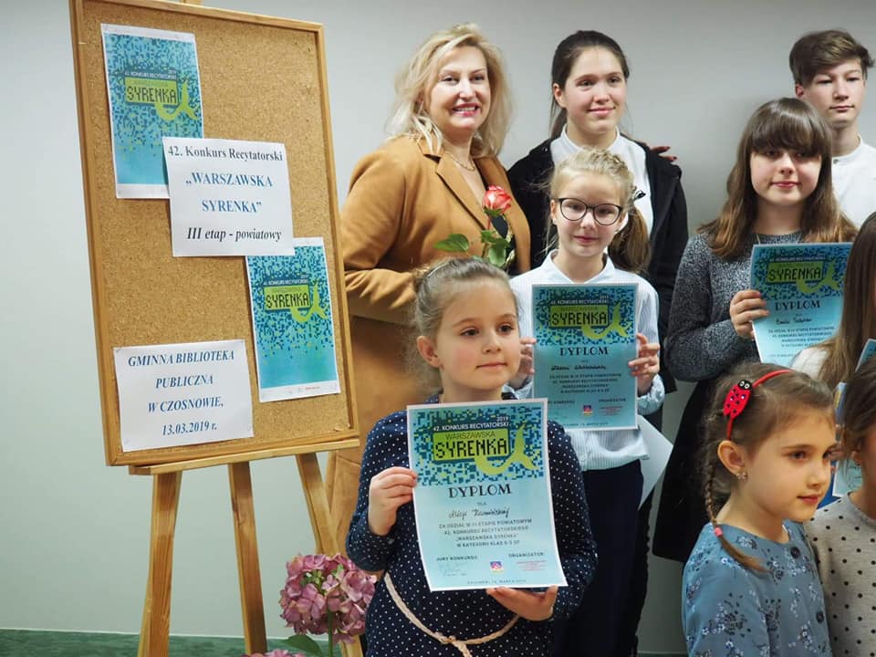 Dnia 13.03.2019r. w Bibliotece Gminnej odbył się 42 finał powiatowego konkursu recytatorskiego Warszawska Syrenka. Naszą szkołę reprezentowali :