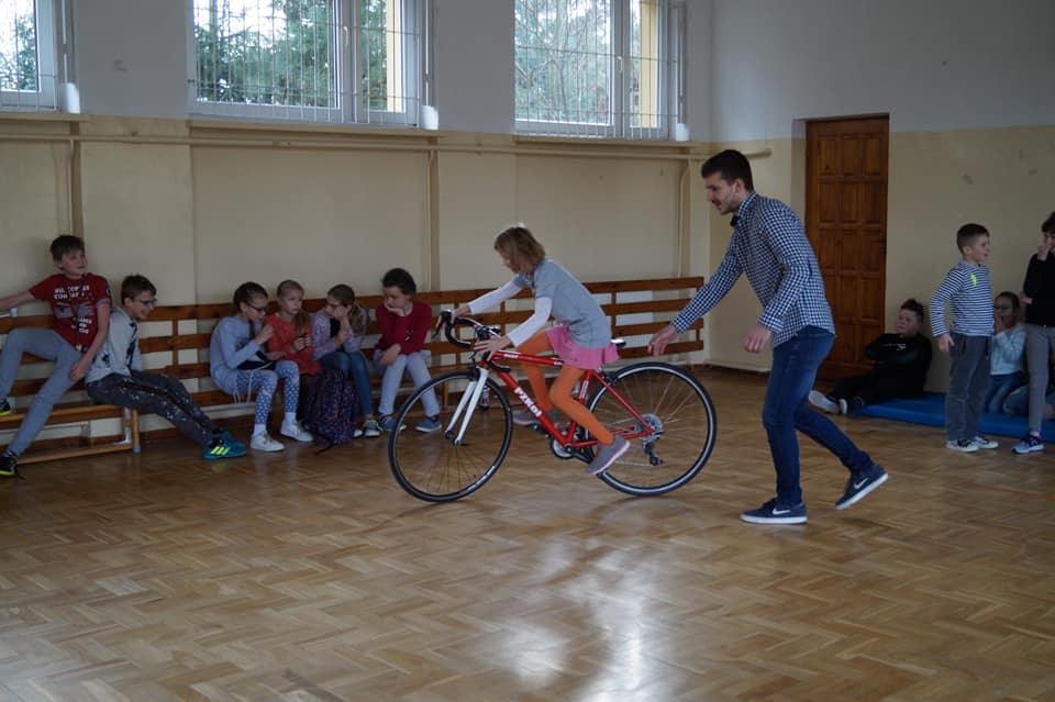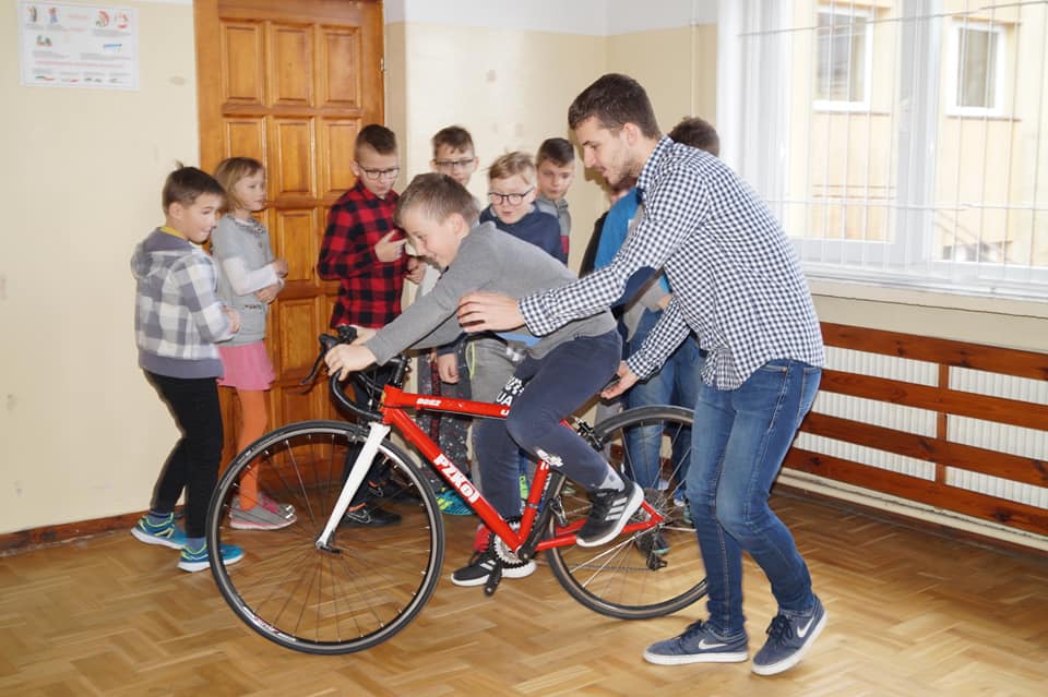 Dnia 11 marca naszą szkołę odwiedził pan Kacper Biernacki, który reprezentował sekcję kolarską z Nowodworskiego Ośrodka Sportu i Rekreacji. Dzieci z klas IV i V mogły zapoznać się z ofertą sekcji, a także przejechać się na prawdziwym, szusowym rowerze, tzw. kolarce. Jako instytucja dbająca o rozwój dzieci, zapewniamy im dostęp do wszelkiej informacji na temat dostępnych form aktywności, mając świadomość, jak ważny jest ruch w życiu młodego człowieka.