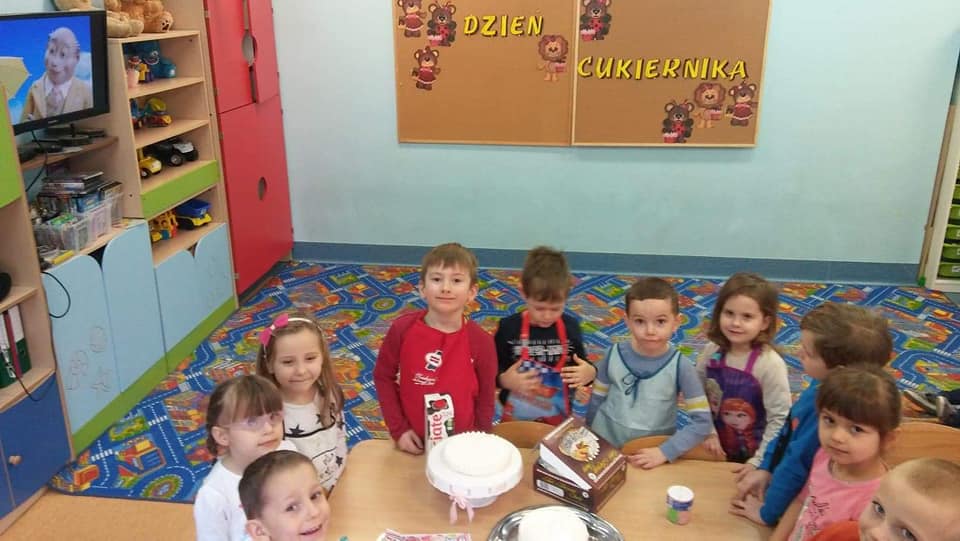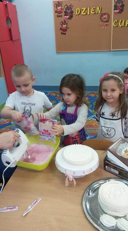 Z okazji Dnia Piekarza i Cukiernika, który obchodzony jest 15 marca - Pszczółki dowiedziały się czym zajmują się osoby pracujące w tych zawodach. Przedszkolaki rozwiązywały zagadki i brały udział w zabawach zwiazanych z tematem zajęć . Na koniec dzieci bawiły się w cukiernikow i samodzielnie przygotowały tort bezowy o smaku malinowym.