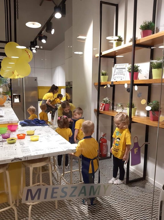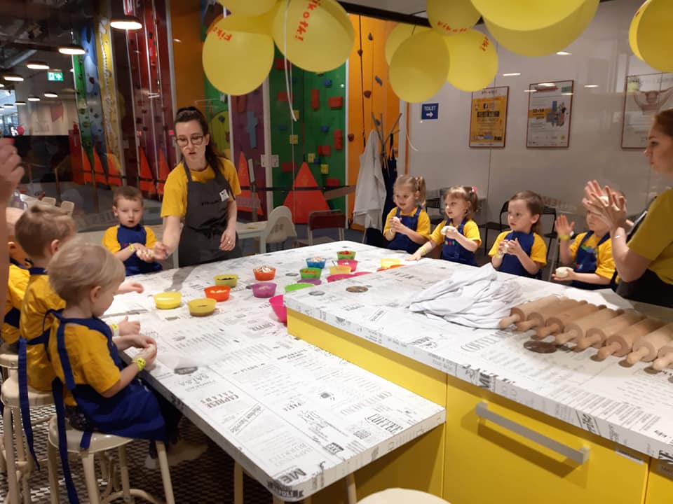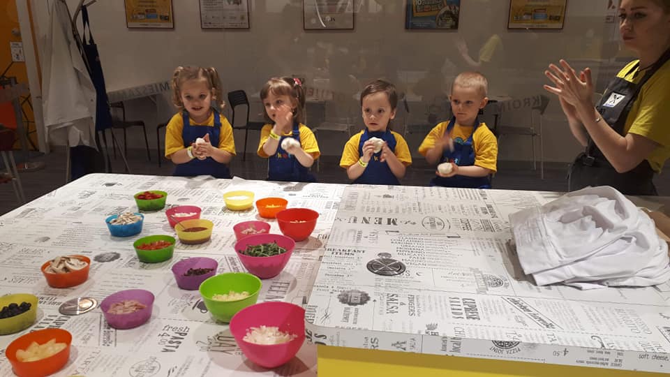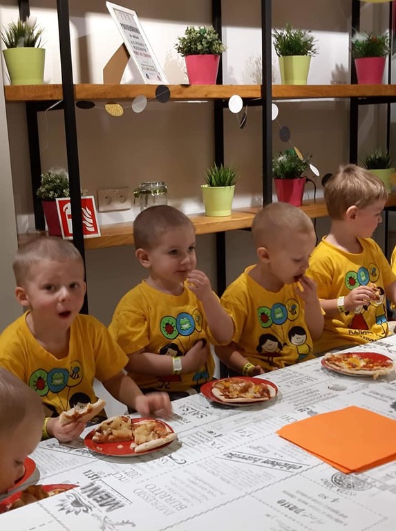 BIEDRONKI w piątek 29 marca udały się na wycieczkę do Sali Zabaw Fikołki w Galerii Północnej. Maluchy uczestniczyły w warsztatach kulinarnych, podczas ktorych wykonały pizze. Uważnie obserwowały jak krok po kroku powstaje ciasto do pizzy, a następnie same dobierały do niej swoje ulubione składniki. Na sam koniec oczywiście była degustacja wspólnie stworzonego specjału. Było pysznie i radośnie.