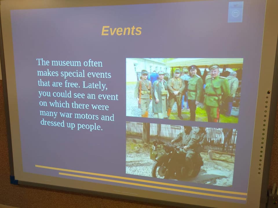 Uczniowie klasy 8 na lekcji języka angielskiego urozmaicają realizację treści podstawy programowej przedstawiając zaproponowane przez siebie projekty. Tematem jednej z lekcji było przedstawienie projektu pt. "Moje ulubione muzeum". Uczniowie, którzy chętnie korzystają z nowinek technologicznych sprawiają, iż praca na lekcji staje się ciekawsza i pobudza do kreatywnego myślenia.