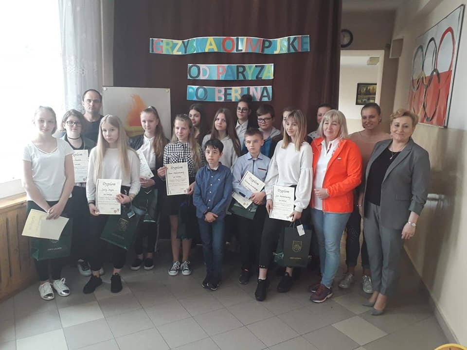 Dnia 10 maja odbył się I powiatowy konkurs wiedzy o Igrzyskach Olimpijskich "Od Paryża do Berlina " w szkole podstawowej Głusku. Uczniowie naszej szkoły wzięli udział w konkursie w składzie : Natalia Wiącek, Ola Latos, Gabriela Stochowska. Po zaciętej walce nasze uczennice osiągnęły 20 pkt na 26 pkt możliwych co dało miejsce tuż za podium. Gratulujemy wiedzy i życzymy dalszych sukcesów. Po konkursie odbyła się prelekcja z wielokrotną mistrzynią świata i europy w kajakarstwie, uczestniczką igrzysk olimpijskich Elżbieta Urbańczyk