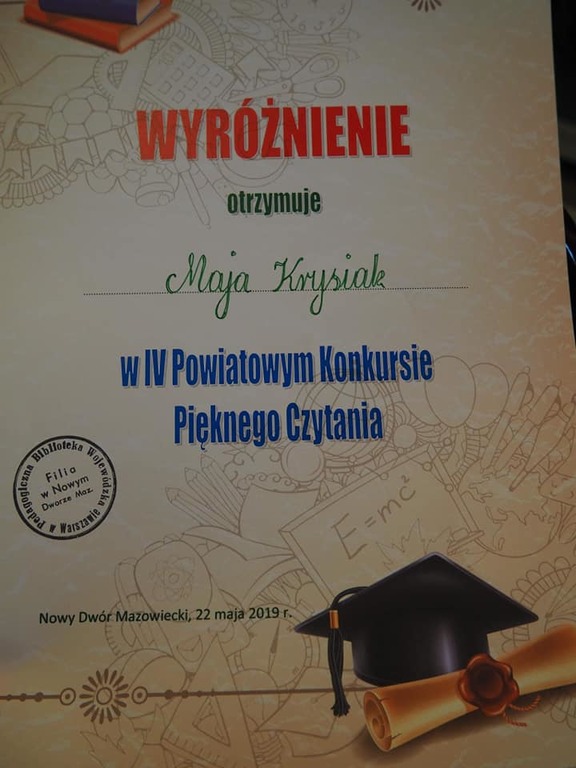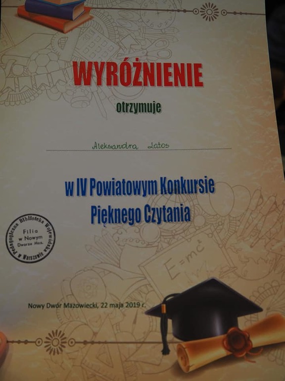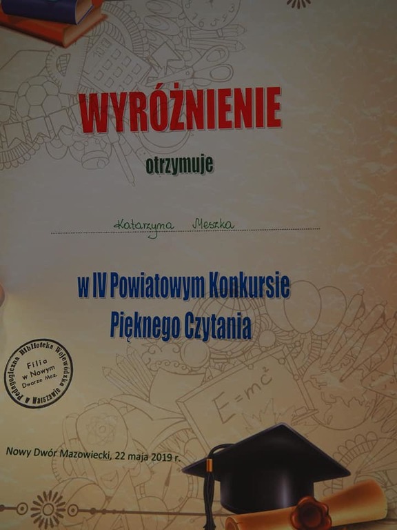 Serdeczne gratulacje dla uczennic naszej szkoły : Mai Krysiak kl. 4Aleksandry Latos kl. 7Katarzyny Meszki kl. 7za zdobycie wyróżnień w Powiatowym Konkursie Pięknego Czytania.