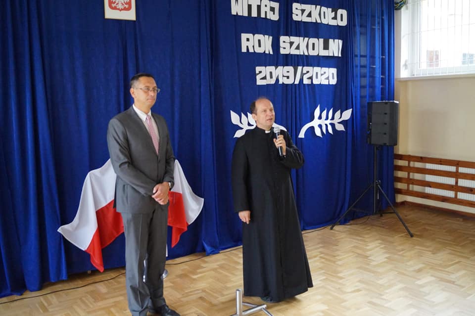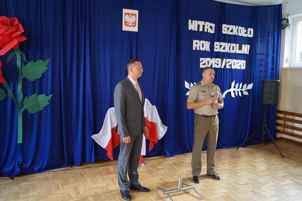 Rozpoczęcie roku szkolnego 2019/20 w Kazuniu Nowym. Dziękując poległym bohaterom II Wojny Światowej, akademię rozpoczęliśmy hymnem narodowym oraz uczczeniem minutą ciszy wszystkich pomordowanych. Zaproszeni goście ks proboszcz Adam Wyszyński, mjr Tomasz Iwan - reprezentujący dowódcę 2 Mazowieckiego Pułku Saperów, Piotr Rutkowski - zastępca wójta Gminy Czosnów oraz Marek Zielski - przewodniczący Rady Gminy Czosnów nawiązali do krwawej historii i daru wolności w obecnych czasach. Cieszymy się, że 80 lat po wojnie, możemy uczyć się w wolnej i niepodległej Polsce.