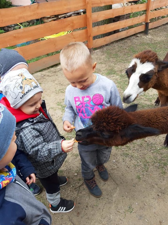 Dnia 25 września Przedszkolaki z Kazunia Nowego wybrały się na wycieczkę do Śmiechominka. Na dzieci czekały alpaki, kangurki, pawie, pieski, kurki i kucyki. Sympatyczni gospodarze ugościli naszych maluchów, opowiedzieli jak należy się opiekować zwierzętami i pozwolili je nakarmić. Dzieci wzięły udział w warsztatach kulinarnych i plastycznych ( pizza, lepienie z zakwasu chlebowego). Ogromną frajdą okazał się plac zabaw, dmuchaniec, karuzela i trampolina. Przedszkolaki spędziły fantastyczny dzień, pełen atrakcji na świeżym powietrzu. Na pewno z miłą chęcią jeszcze kiedyś odwiedzimy to miejsce.
