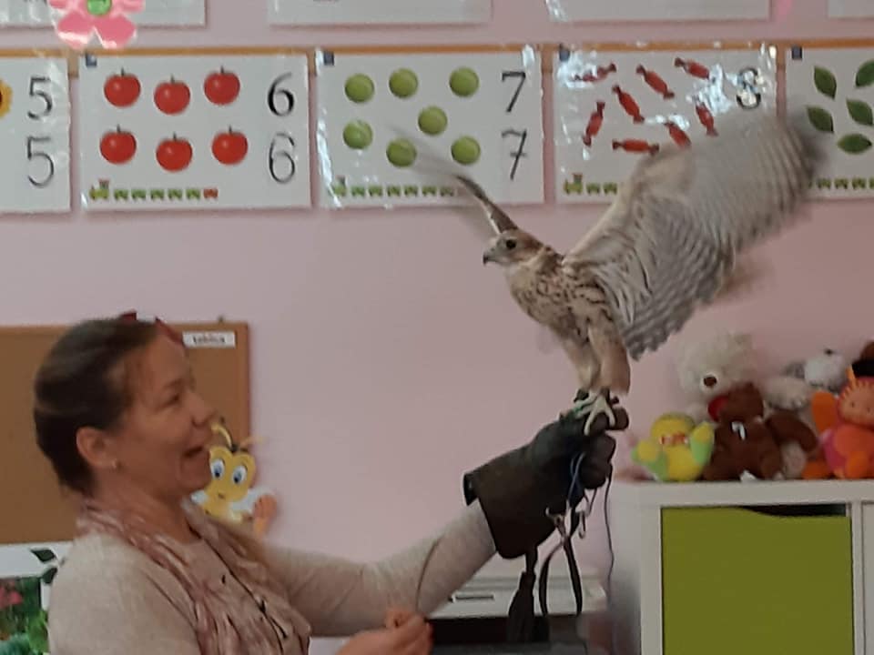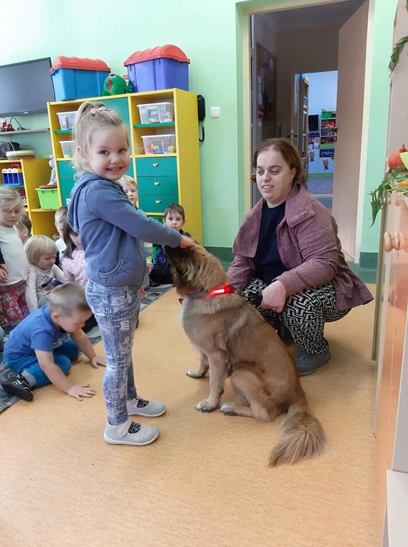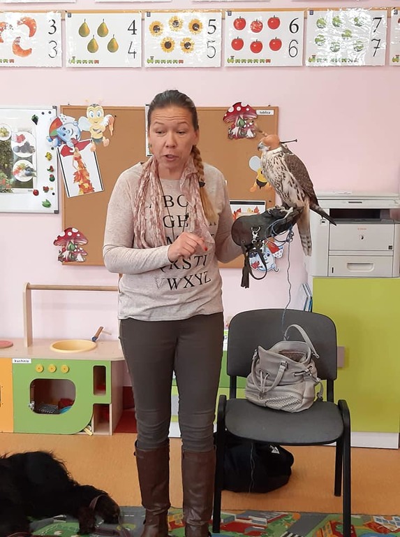 4 października - w piątek w naszym przedszkolu obchodziliśmy Światowy Dzień Zwierząt. Dzień ten miał na celu uświadomienie dzieciom, że zwierzęta, które z nami mieszkają i które są obok nas, również mają swoje prawa. Tego dnia na dzieci czekało wiele atrakcji. Przedszkolaków odwiedziły papużki faliste Ela, Pedro i Orzeszek, dwa żółwie, rybka bojownik oraz pies Mila. Dzieci poznały różne ciekawostki na temat tych zwierząt oraz wiadomości dotyczące opieki nad nimi. Przedszkolaki przekonały się, że być właścicielem zwierząt, to ogromna odpowiedzialność, a ochrona zwierząt to nie hobby, ale obowiązek. Została także zwrócona uwaga dzieci na to, że zwierzęta czują jak ludzie i nie są zabawką, którą można wyrzucić. Wszystkie przedszkolaki słuchały uważnie wierszy, rozwiązywały zagadki oraz oglądały prezentację na tablicy multimedialnej o tematyce związanej ze zwierzętami. Kolejną atrakcją tego dnia były odwiedziny pani Agaty z sokołem Azimo i psem Kliperem. Pani Agata opowiedziała przedszkolakom o swoich pupilach oraz pokazała przedmioty potrzebne do opieki nad nimi. Dzieci były ogromnie szczęśliwe ponieważ Kliper uwielbiał głaskanie, czesanie, a na dodatek wcale nie chciał opuszczać naszego przedszkola ze swoją właścicielką, tylko chciał pozostać z naszymi maluchami. Na koniec świętowania Dnia Zwierząt każda z grup wykonała piękne prace plastyczne.