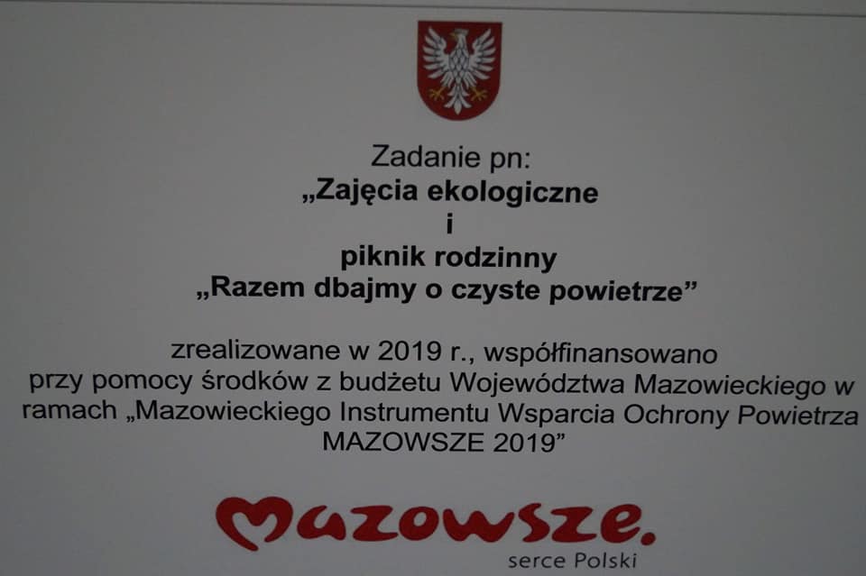 9 października 2019 r wszyscy uczniowie szkoły podstawowej wzięli udział w prelekcji poświęconej akcji "'CZYSTE POWIETRZE" - zadanie pt.: "Zajęcia ekologiczne i piknik rodzinny, razem dbamy o czyste powietrze" współfinansowane ze środków z budżetu Województwa Mazowieckiego.