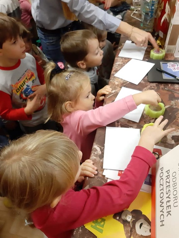 9 października obchodziliśmy w naszym przedszkolu Dzień Poczty Polskiej. W każdej grupie wiekowej odbyły się zajęcia, na których dzieci dowiedziały się w jakim celu chodzi się na pocztę, jakie są sposoby przekazywania informacji na odległość oraz jakie są etapy drogi listu od adresata do odbiorcy.
