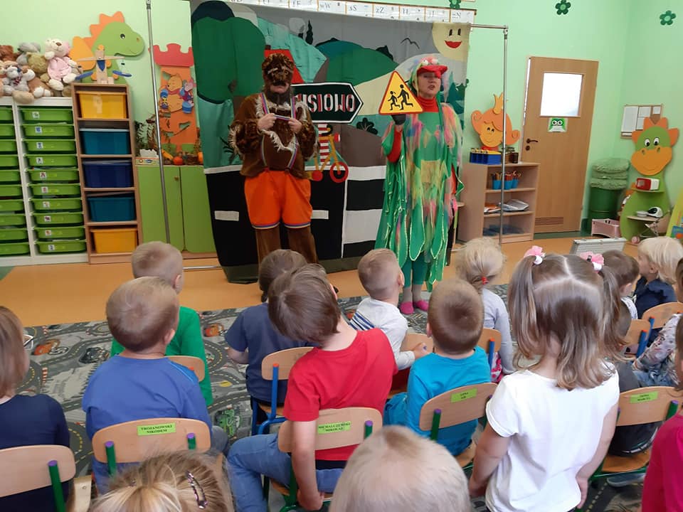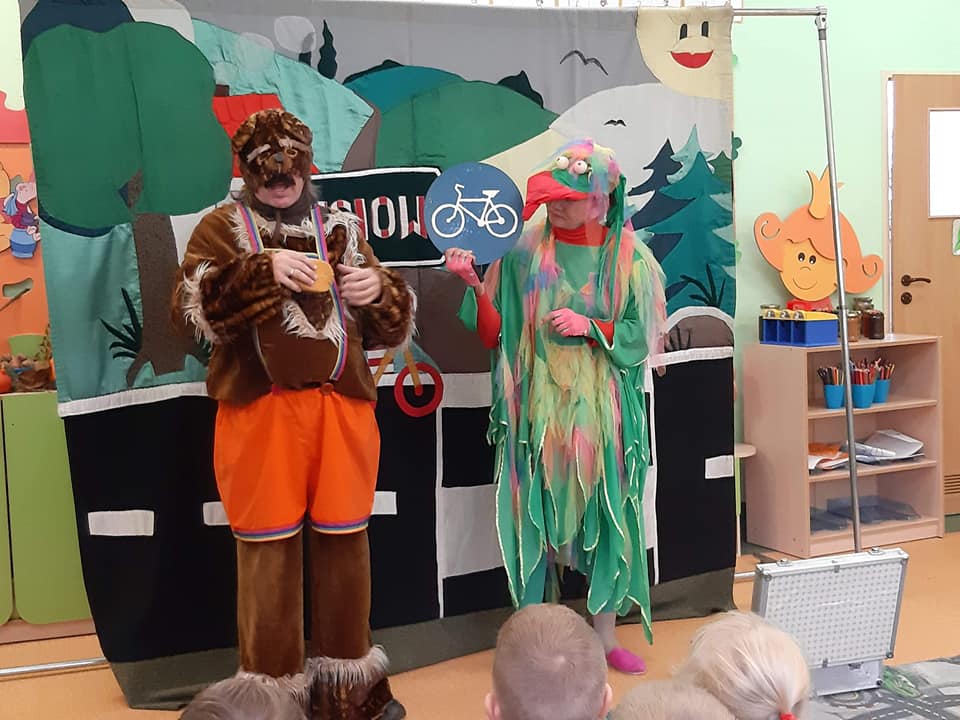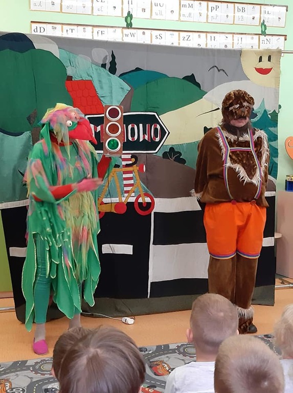 Dnia 17 października nasze Przedszkolaki obejrzały przedstawianie pt. „Misiowa draka o drogowych znakach”.