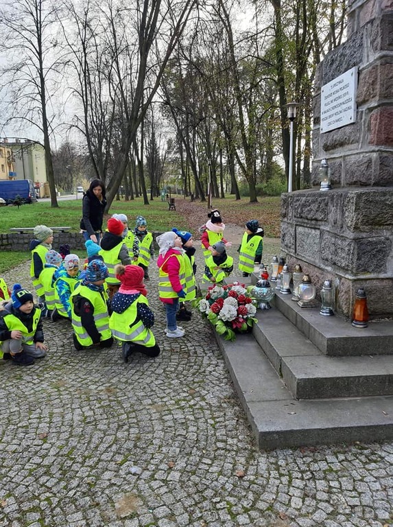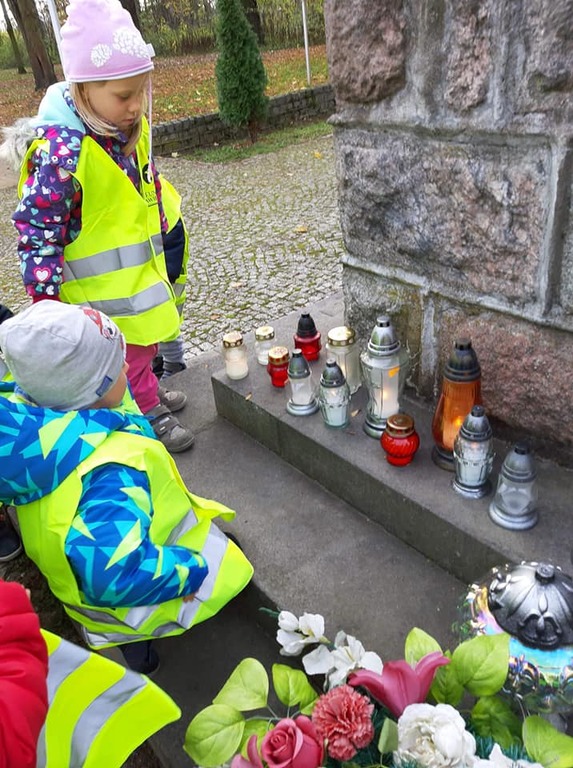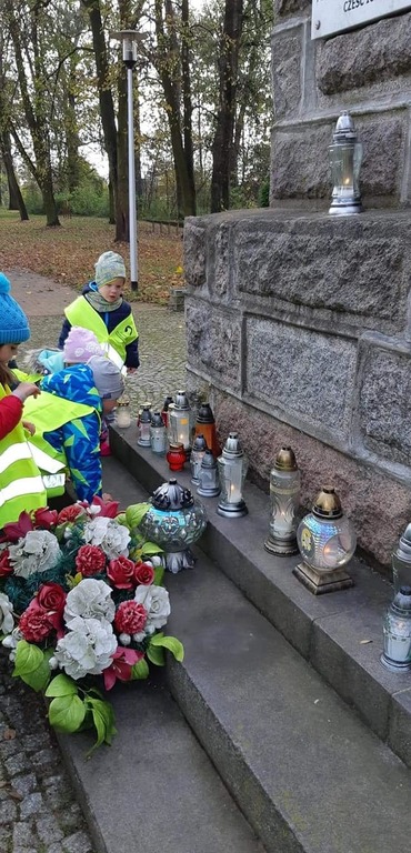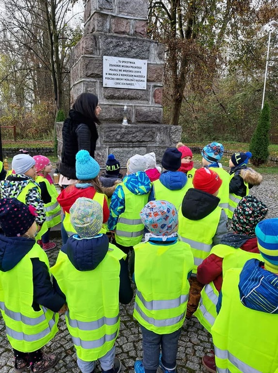 Przedszkolaki zapaliły znicze pod Pomnikiem Obrońców Kazuniu Nowego
