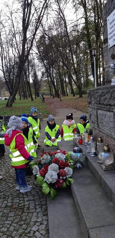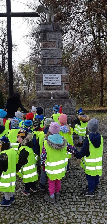 W dniu dzisiejszym przedszkolaki zapaliły znicze pod Pomnikiem Obrońców Kazuniu Nowego i Modlin Twierdzy. Celem spaceru było kształtowanie od najmłodszych lat patriotycznych postaw i oddanie hołdu poległym bohaterom. Pamięć o zmarłych jest obowiązkiem każdego człowieka. Wprowadzając w świat wartości społeczno - moralnych, nie może zabraknąć zajęć przybliżajacych maluchom naszych bohaterów narodowych, ludzi, którzy zginęli w obronie naszej ojczyzny, ale również w przeddzień Święta Zmarłych należy przypomnieć dzieciom o bliskich, których już z nami nie ma.