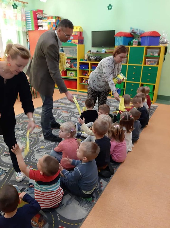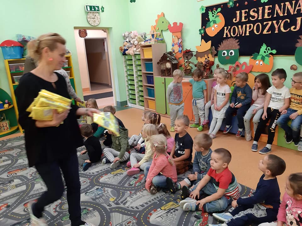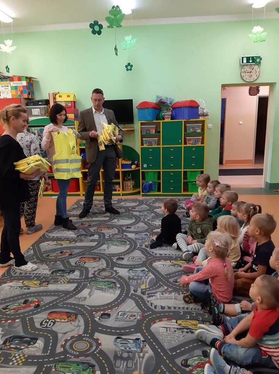 Aby nasze dzieci rozwijały się prawidłowo muszą poznawać świat, który je otacza. O ile wszystkie przedszkola posiadają ogrodzony plac zabaw, to często podopieczni wychodzą poza ogrodzony obszar placu zabaw na spacer lub wycieczkę. Nie zapominajmy, że podstawowe wiadomości z zakresu ruchu drogowego np. zachowanie na drodze, jest coraz częściej nauczane w przedszkolu jako element edukacji przedszkolnej. W ramach corocznego cyklu zajęć o bezpieczeństwie ,,Bezpieczeństwo Ważna Sprawa '' dziś w naszej placówce odbyła się pogadanka na temat bezpieczeństwa pieszych. W takich przypadkach stosowanie kamizelek odblaskowych dla dzieci jest niemal wymogiem. Dlatego też maluchy otrzymały od dyrektora ZSP p. Krystiana Buszty odblaskowe kamizelki, aby były widoczne na drodze.