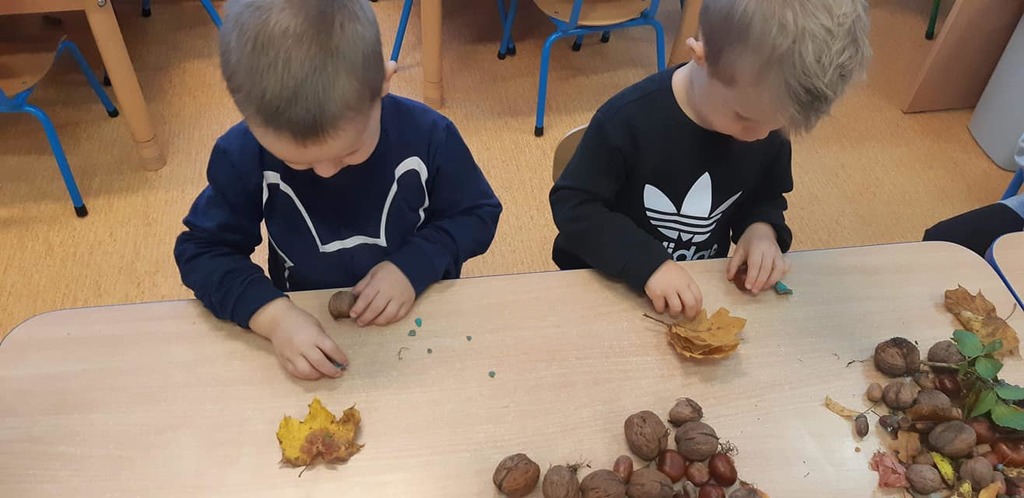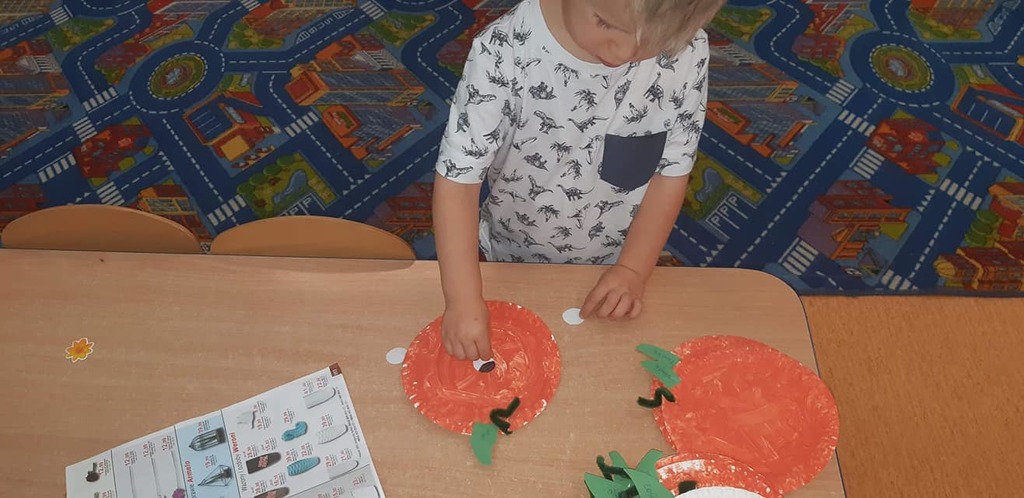 Podczas mienionego miesiąca dzieci z grupy Biedronki miały okazję poznać różne aktywnosci, które mogły być dobrą receptą na nudę w jesienne wieczory. Maluchy malowały palcami, toczyły, lepily z plasteliny i używały postaci do odgrywania różnych scenek. Przypomniały sobie, jak wygląda jesień w parku i sprawdziliśmy, jakie kolor powstanie po połączeniu żółtego i czerwonego. Eksperyment powtarzalismy używając innych kolorów. Dzieci ilustrowaly ruchem piosenkę Marsz dzieci , dzięki czemu rozwijały swoją wyobraźnię ruchową, poczucie rytmu i wrażliwość słuchową . Przeczytane opowiadanie z cyklu "Przygody Martynki" skłoniło dzieci do wykonanie pracy plastycznej Moj piesek ,Mój kotek. Opowiadanie i wspólne czytanie wpływa pozytywne na rozwój poznawczy i spoleczny dziecka. Poznaliśmy również piosenkę "My jesteśmy krasnoludki" oraz wiersz "Niewidzialna plastelina Oli". Ustaliliśmy nazwy części ciała dzięki wierszykowi Marty Bogdanowicz "Idzie, idzie". Ten wierszyk wykorzystaliśmy do zrobienia sobie wzajemnie delikatnego masażu. Zabawy, które odbyły się w tym miesiacu będę doskonałą inspiracją do zajęcia wolnego czsu ,kiedy mama i tata są zajęci.