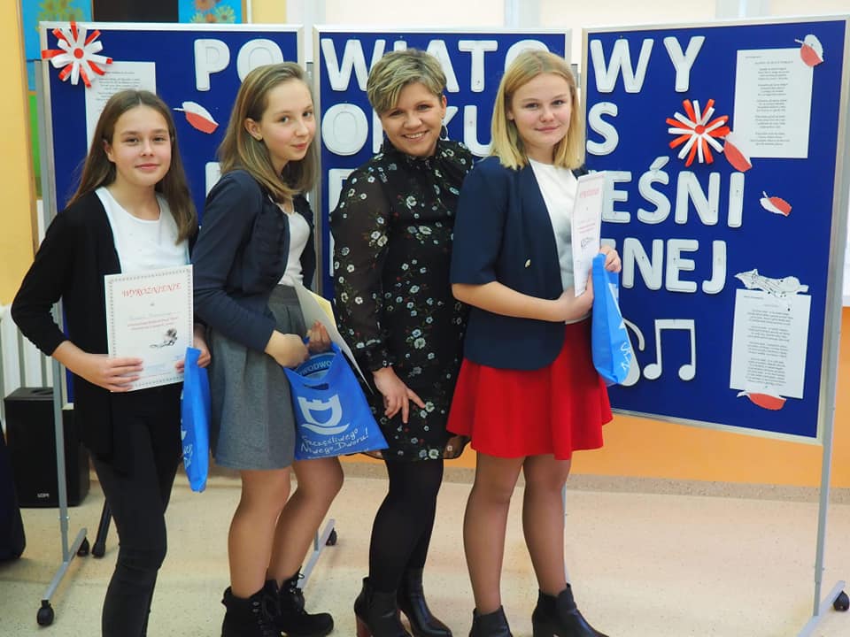 Dnia 15.11.2019r. uczennice ZSP w Kazuniu Nowym wzięły udział w Powiatowym Konkursie Pieśni i Poezji patriotycznej. Uczestnicy dostarczyli wszystkim przybyłym wielu wzruszeń. Krzewienie postaw patriotycznych poprzez poezję i muzykę to doskonała forma kształtowania charakterów młodych ludzi. Gratulujemy i życzymy dalszych sukcesów.