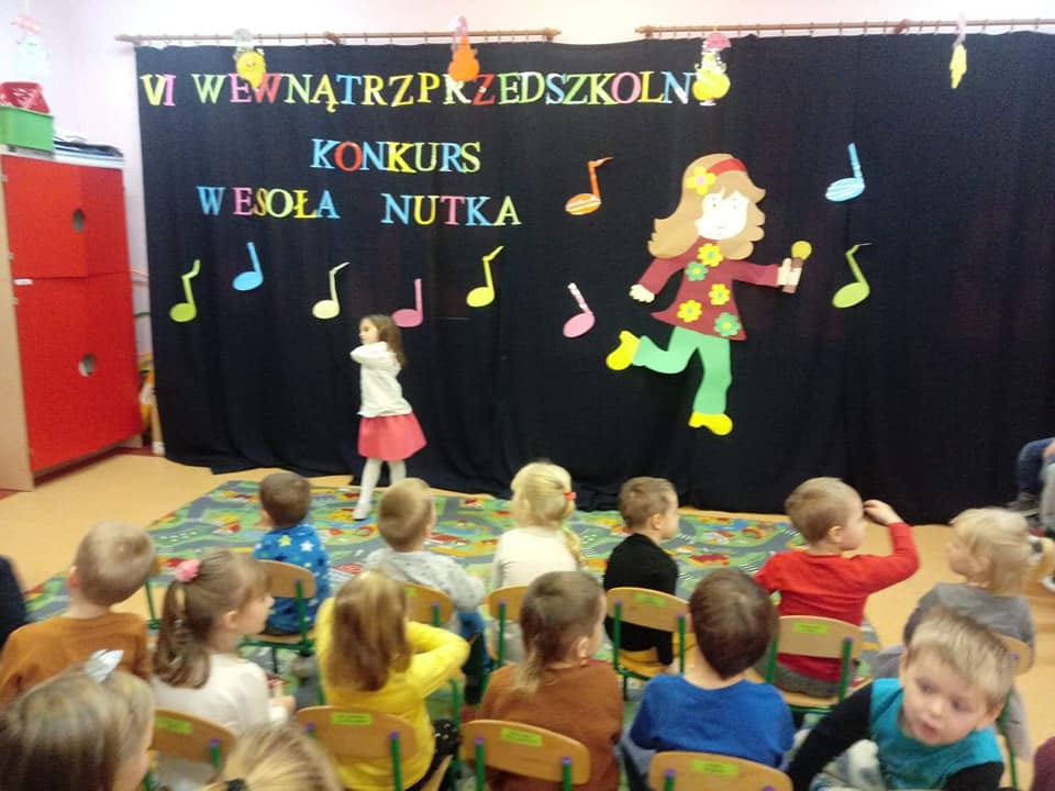W dniu 20 listopada w naszym przedszkolu odbył się wewnątrzprzedszkolny Konkurs Piosenki Dziecięcej ,,Wesołe nutki”. Głównym celem konkursu było rozbudzenie u młodych wykonawców zamiłowania do śpiewu i muzyki, kształtowanie wrażliwości artystycznej oraz prezentacja uzdolnień muzycznych przedszkolaków.