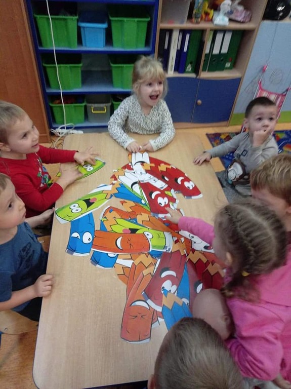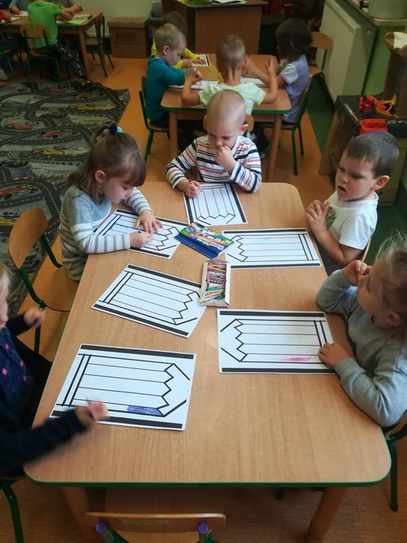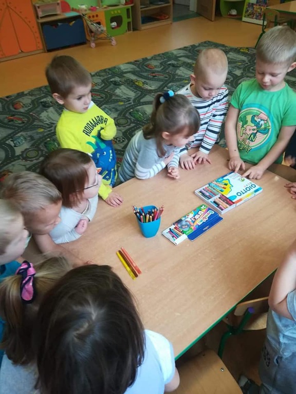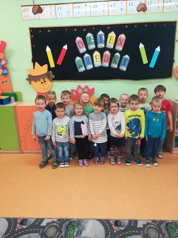 Dnia 22.11 dzieci z naszego przedszkola obchodziły Dzień Kredki. W tym dniu wszystkie zajęcia były poświęcone temu świętu. Maluchy zaczęły dzień od obejrzenia filmu "Jak powstają kredki". Przedszkolaki poznały rodzaje kredek, przypomniały sobie kolory. Odbył się również konkurs na najszybciej zatemperowaną kredkę. W każdej z grup dzieci wykonały prace plastyczne, którymi maluchy mogły pochwalić się przed rodzicami.