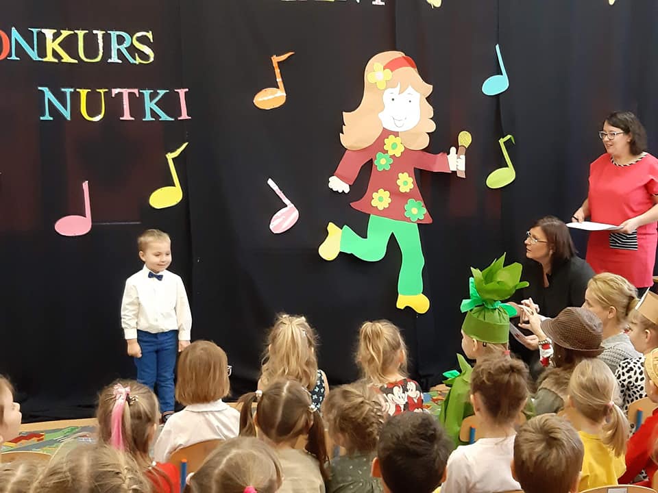 27 listopada odbył się międzyprzedszkolny konkurs piosenki dziecięcej "Wesołe Nutki”. W konkursie udział wzięło 5 przedszkoli: Przedszkole Publiczne z Kazunia Nowego, Przedszkole „Elemelek”, Przedszkole Niepubliczne „Nutka”, Przedszkole Niepubliczne „Zielona Akademia oraz Przedszkole Publiczne z Kaliszek. Konkurs był przeznaczony dla dzieci 3, 4, 5-cio letnich. Celem konkursu było pobudzanie dzieci i rodziców do aktywnego uczestnictwa w życiu przedszkola, rozwijanie zdolności wokalnych dzieci, próba pokonania nieśmiałości dzieci poprzez publiczny występ, prezentacja umiejętności przedszkolaków oraz uczenie rywalizacji w przyjaznej atmosferze. Do tego etapu zostało zakwalifikowanych 24 dzieci. Konkurencja była bardzo duża, a jak się okazało wybór zwycięzców bardzo trudny. Wszyscy uczestnicy zachwycili niezwykłą pamięcią i pięknymi strojami, chociaż można było dostrzec lekką tremę.