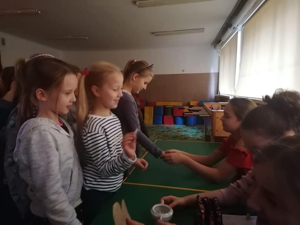 Lubimy tę aurę tajemniczości, jesteśmy ciekawi co przyniesie nam przyszłość, ale przede wszystkim nie odmawiamy sobie okazji do świetnej zabawy. W tym roku klasa II i III wróżyła sobie dzięki uprzejmości uczennic z klasy VIII. Nasze szkolne "wróżki" przepowiadały przyszłość z losowanych karteczek, numerków oraz czytając z ręki. Wszyscy dowiedzieli się nieco o swojej przyszłości i nawet jeżeli większość traktowała to jedynie z przymróżeniem oka, to miło jest razem spędzić czas bez komputera, smartfona czy tabletu z uśmiechem nieschodzącym z twarzy.