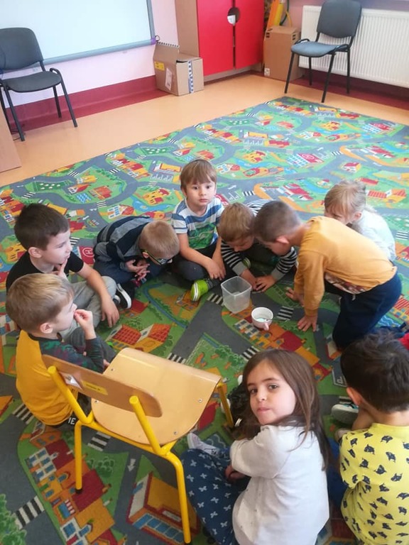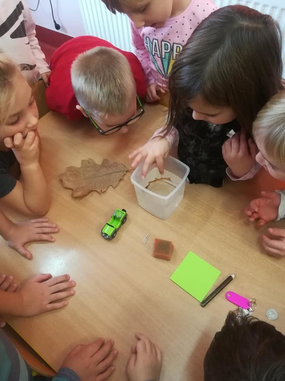 Za nami czas ,,złotej jesieni". Świat za oknem jest coraz bardziej szary i ponury, ale nasze Pszczółki wcale się nie nudzą :-) Na początku listopada przedszkolaki zdobyły wiadomości dotyczące Kosmosu i Układu Słonecznego. Dzieci poznały nazwy planet, dowiedziały się różnych ciekawostek, porównywały ich wielkości, poznawały kolejność ich ułożenia na orbitach. Przedszkolaki poszerzyły swoją wiedzę na temat chmur, ich rodzajów i procesu ich powstawania. Przeprowadziliśmy zabawę badawczą: co pływa, co tonie? Pszczółki sprawdzały, które przedmioty potrafią utrzymywać się na powierzchni wody, a które toną. Na początku doświadczenia, zdania co do zdolności ,,pływackich" niektórych przedmiotów były podzielone. Na koniec dzieci jednak nie miały wątpliwości, że ciężkie przedmioty toną, a lekkie pływają. Przeprowadzony eksperyment wzbudził w dzieciach duże zainteresowanie.