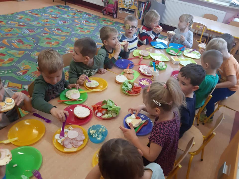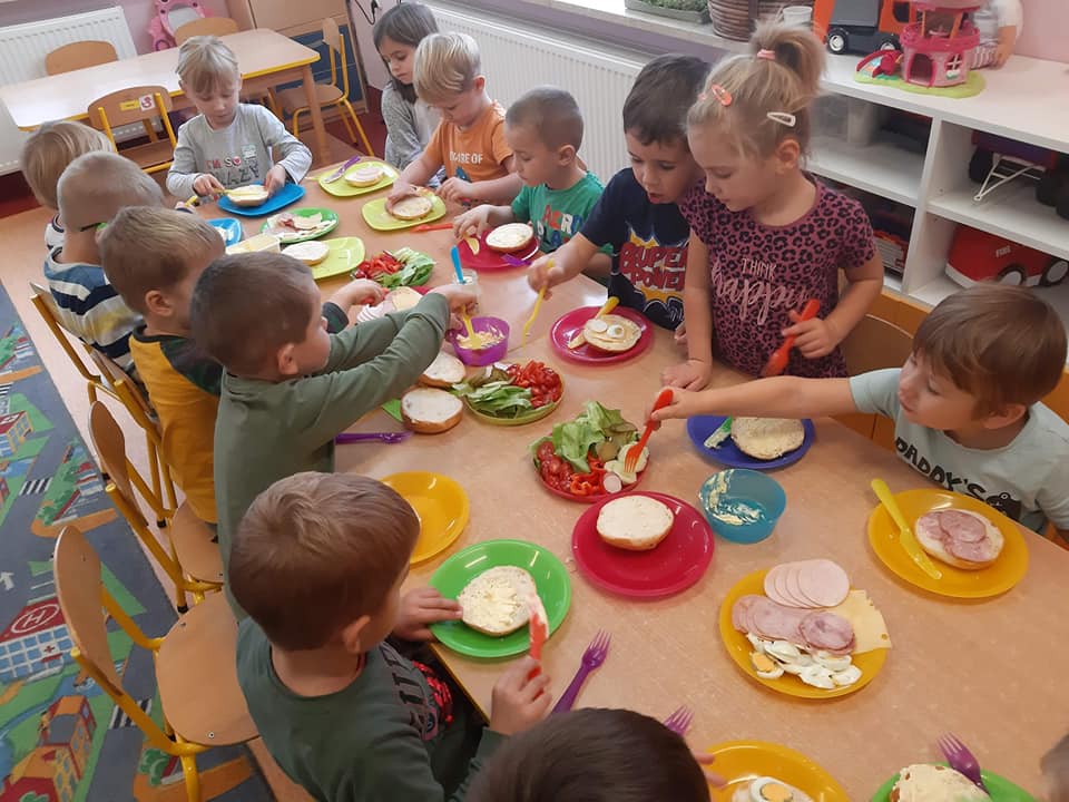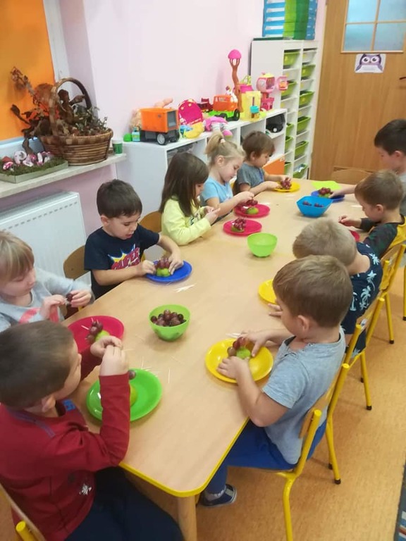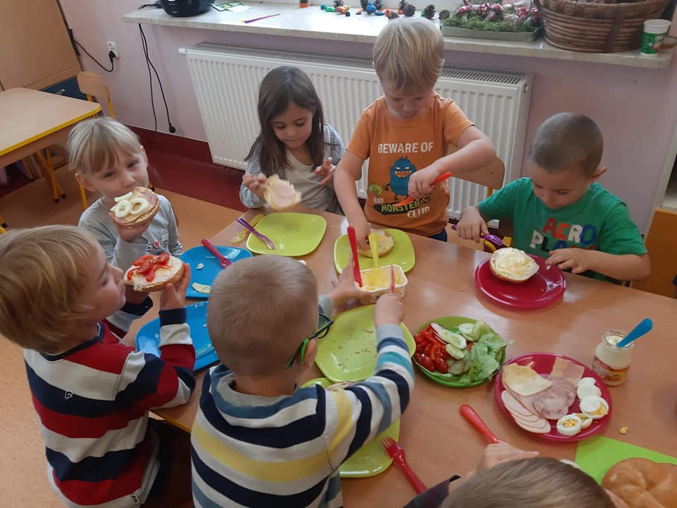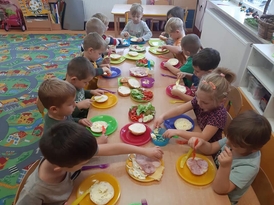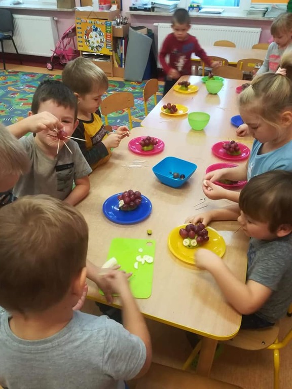 Przedszkolaki z Kazunia Nowego w miesiącu listopad kształciły swoje praktyczne umiejętności kulinarne oraz poznawały zasady prawidłowego odżywiania się, które są niezbędne w dorosłym życiu. Pszczółki przygotowały owocowe jeże i kanapki. Żabki upiekly pyszne pierniki, natomiast Biedronki zrobiły racuchy z jabłkami i sernik na zimno.