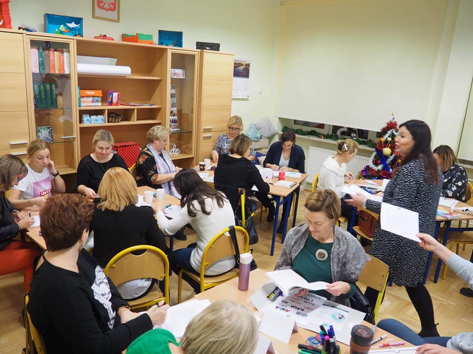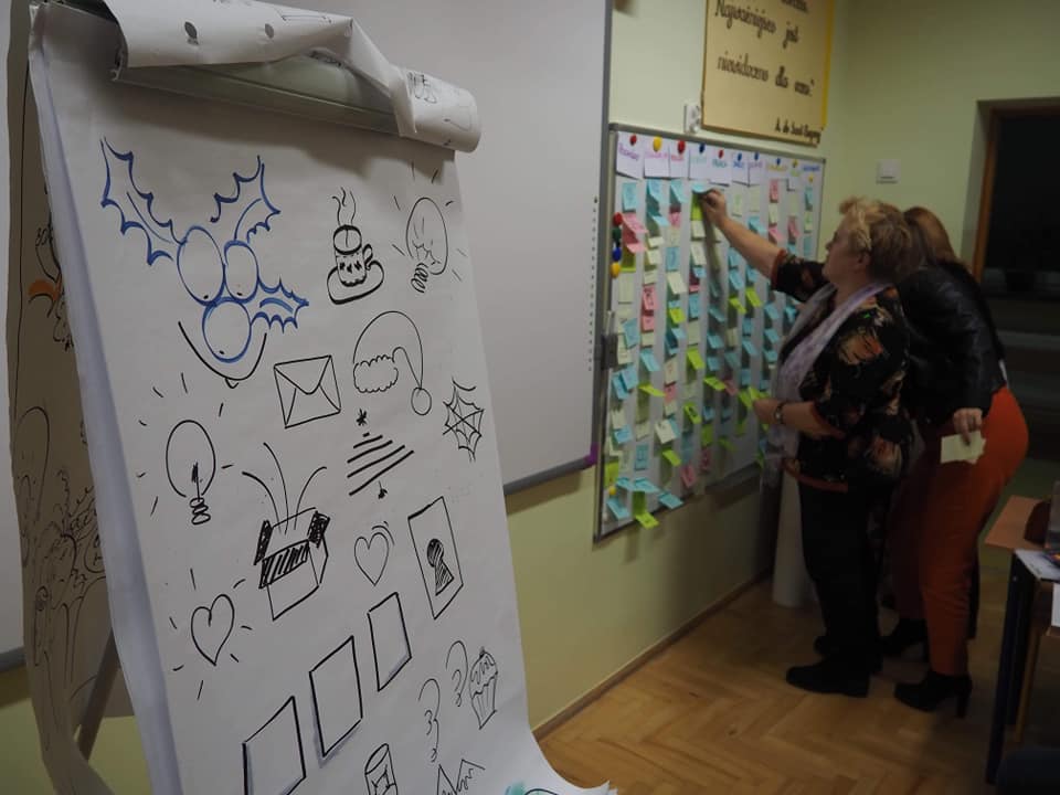 13 grudnia 2019r. w Zespole Szkolno-Przedszkolnym w Kazuniu Nowym odbyło się kolejne spotkanie w ramach Klubu Kreatywnego Nauczyciela. Tym razem pani Monika Just, trenerka twórczego myślenia, poprowadziła warsztaty myślenia wizualnego dla nauczycieli i rodziców z powiatu nowodworskiego. Metoda, którą mieli okazję poznać uczestnicy szkolenia, jest bardzo skuteczna podczas wprowadzania nowych treści, ponieważ dzieci zapamiętują więcej i łatwiej im zwizualizować to, czego się nauczyły. Myślografia to również doskonały sposób na rozbudzenie kreatywności uczniów, a także wychodzenie poza utarte schematy myślenia i działania.