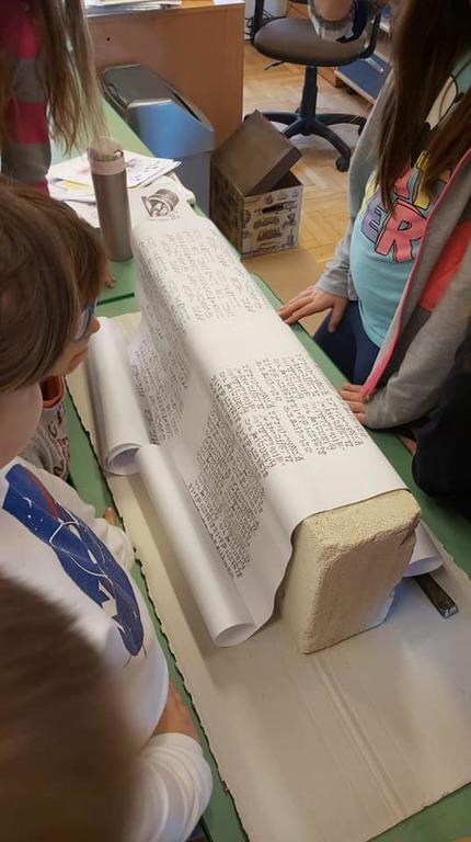 Kilka dni temu uczniowie klasy trzeciej, dzięki uprzejmości Pani Jolanty Biernackiej, mieli okazję uczestniczyć w lekcji bibliotecznej. Niech się wam tylko nie wydaje, że była ona jakaś nudna, kompletnie pozbawiona działania. Otóż nie, działania było aż nadto... Na początku "weszliśmy" w temat od strony historycznej - przenieśliśmy się do Chin, zahaczylismy o Egipt i papirus. Kolejnym etapem był druk, także kilka zdań o panu Gutenbergu i początkach prasy. A potem...potem już tylko działanie, które polegało na....zresztą sami zobaczcie. Jedno jest pewne zawód bibliotekarza nie będzie się nam już kojarzył z rutyną...😉