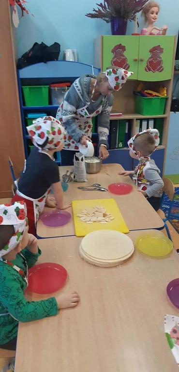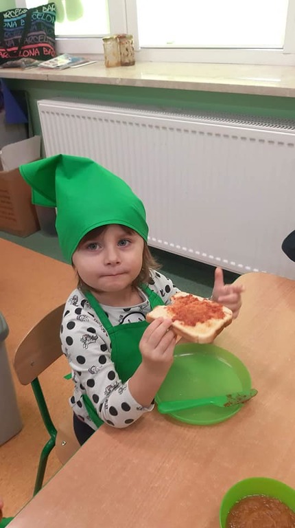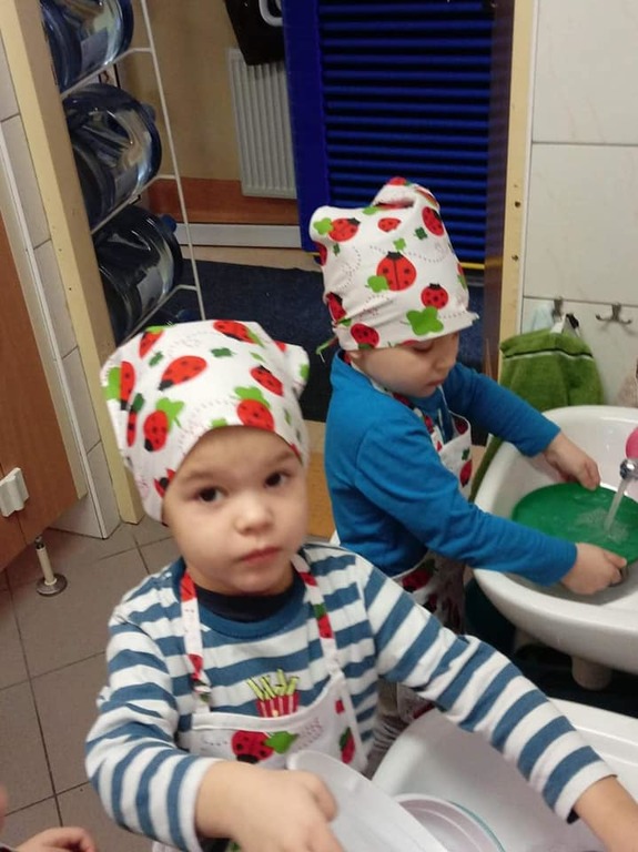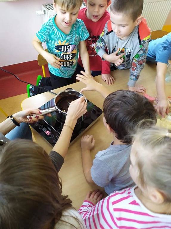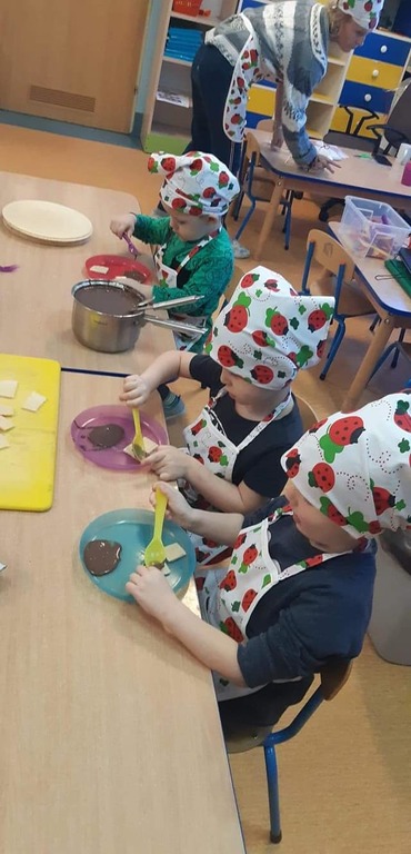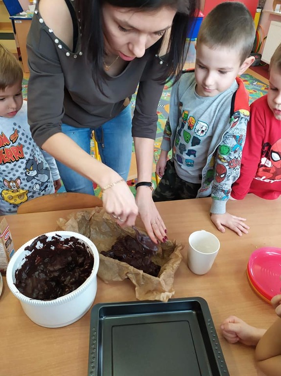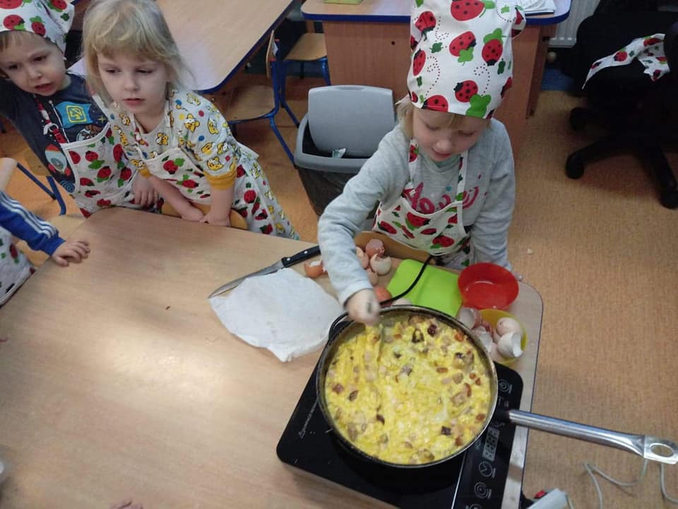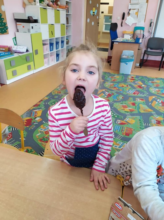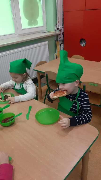 W stycznia dzieci z przedszkola mogą pochwalić się sukcesami kulinarnymi. Grupa Biedronek smażyła jajecznicę oraz wafle. Żabki przygotowały tosty, a Pszczółki robiły blok czekoladowy.