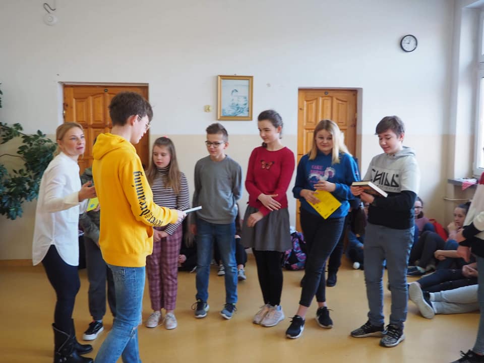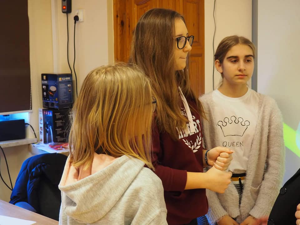 Opowiedziała nam o swojej ścieżce kształcenia. Po ukończeniu gimnazjum kontynuuje naukę w liceum ogólnokształcącym. Zwróciła nam uwagę na ciężką, samodzielną pracę jaką trzeba włożyć, aby zdać z dobrym wynikiem egzamin maturalny. Odpowiadała również na nasze pytania. Podpowiedziała nam, w jaki sposób powinniśmy wybrać nową szkołę ponadpodstawową, na co trzeba zwrócić szczególną uwagę, np.: dobrą organizację czasu, planowanie, systematyczną pracę.